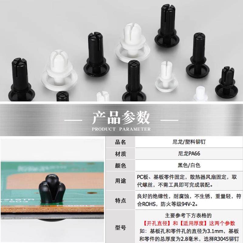 配电箱标牌塑料铆钉PC板固定按压式卡扣子母膨胀铆钉黑白R30/4060