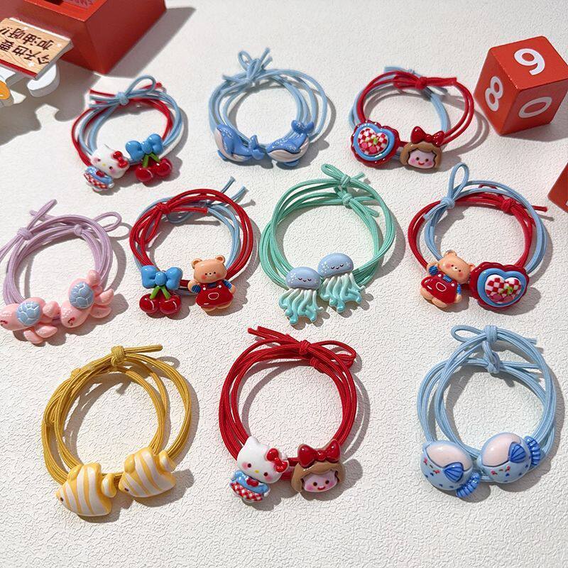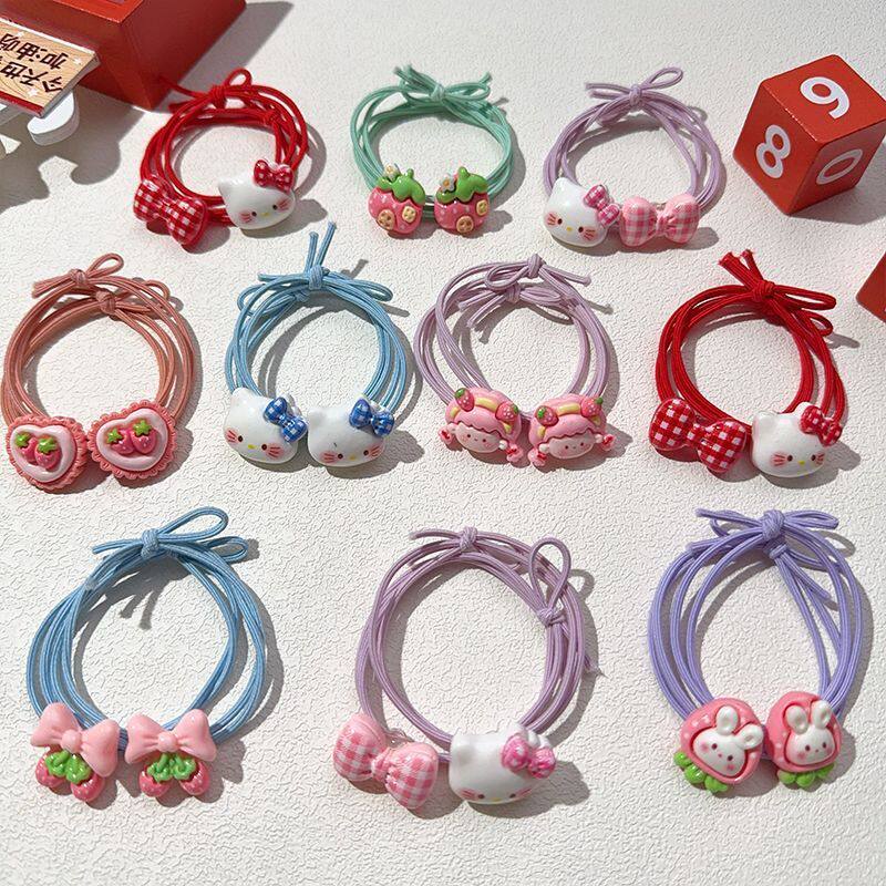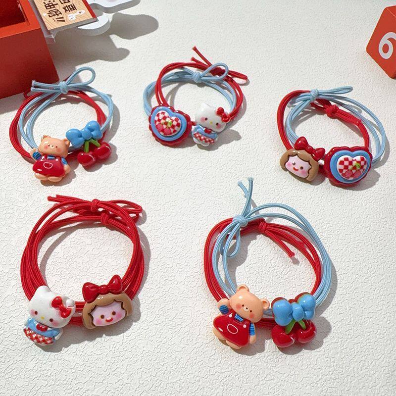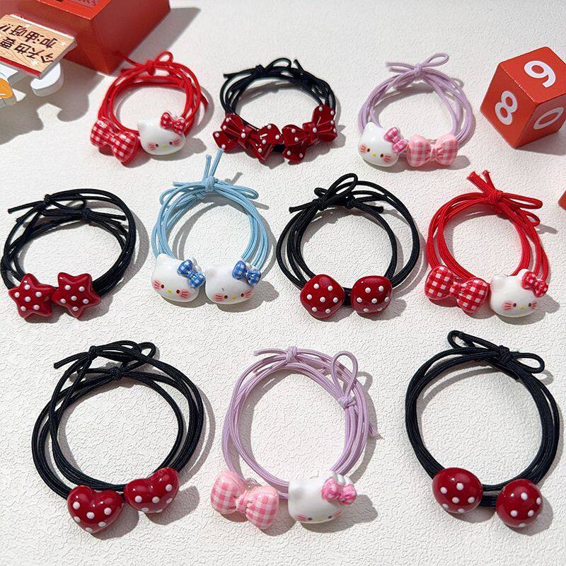KT猫小熊儿童可爱头绳红色高弹力不伤发小女孩扎头发绳皮筋蝴蝶结