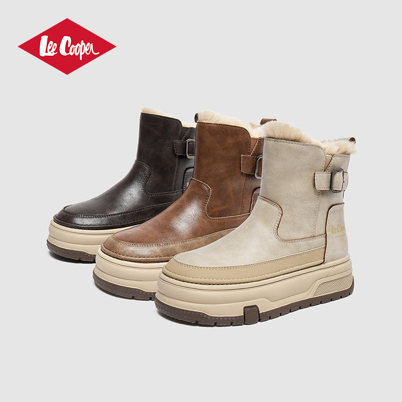 Lee Cooper雪地靴女款2025新款冬季高帮加绒保暖女鞋时尚软底棉靴