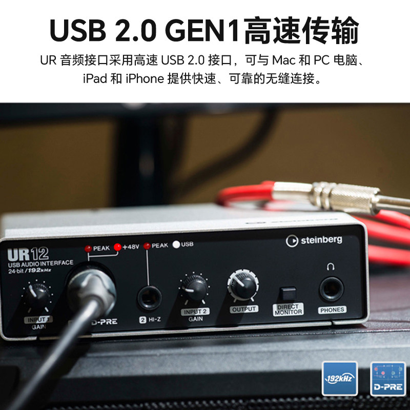 雅马哈 UR12 外置声卡混音直播K歌 电脑直播录音