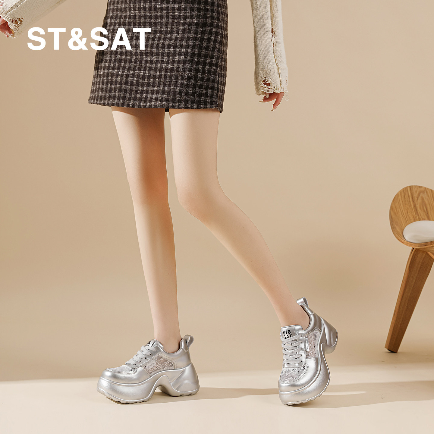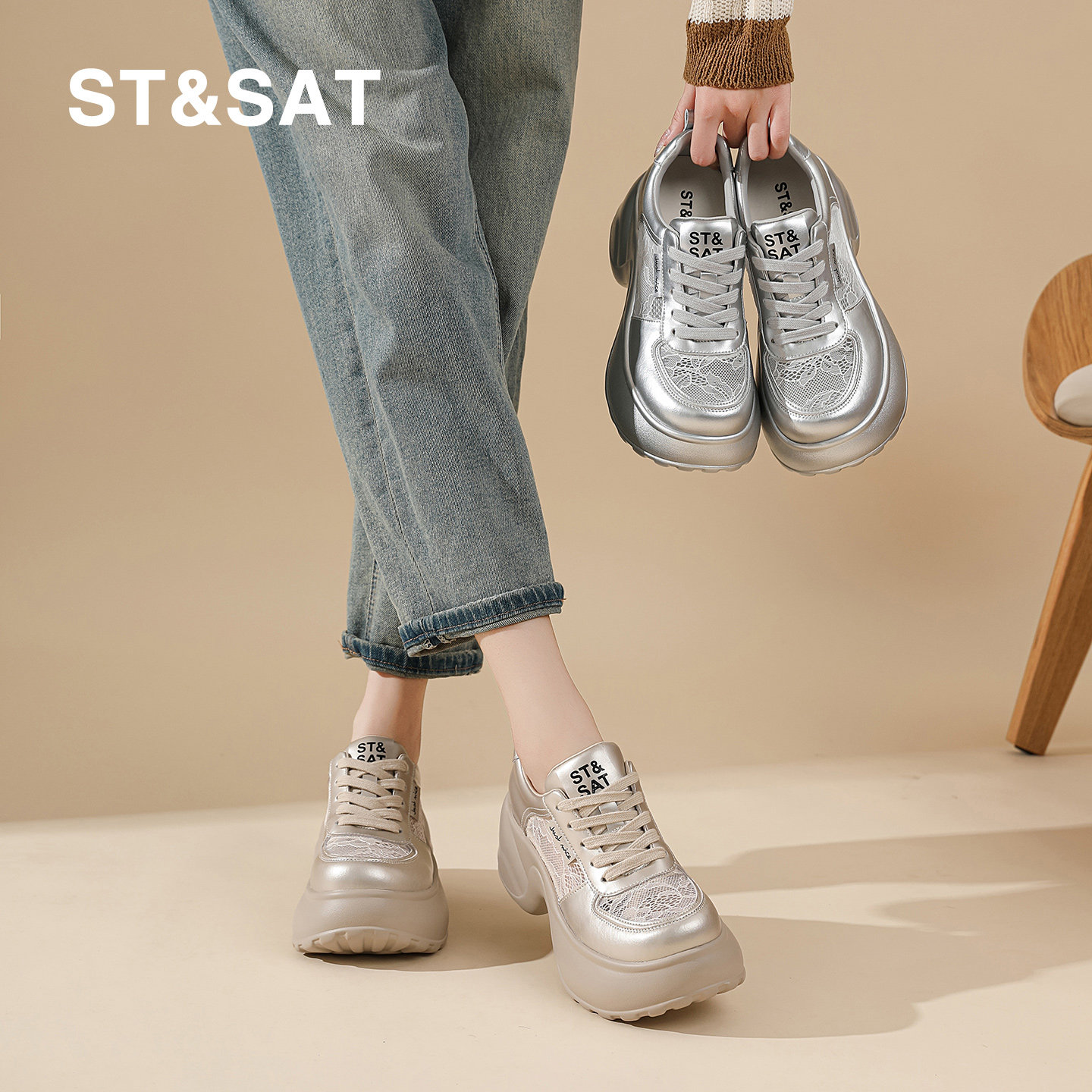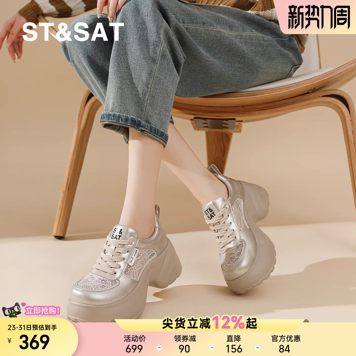 星期六厚底蕾丝休闲鞋女春季新款增高老爹鞋百搭松糕鞋舒适运动鞋