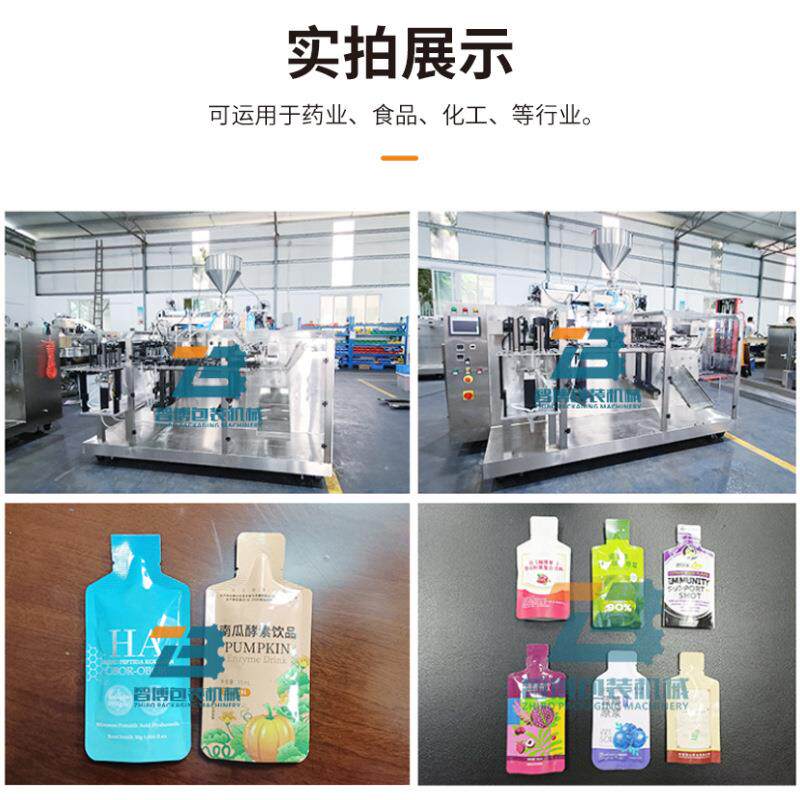 异形袋液体水平给袋灌装机全自动黑枸杞原浆包装机定量包装设备