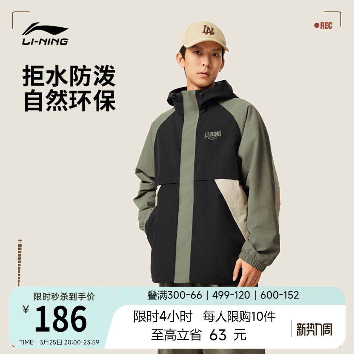 李宁外套男春季上衣拼接休闲潮流连帽防风服宽松梭织风衣运动服