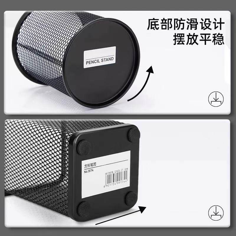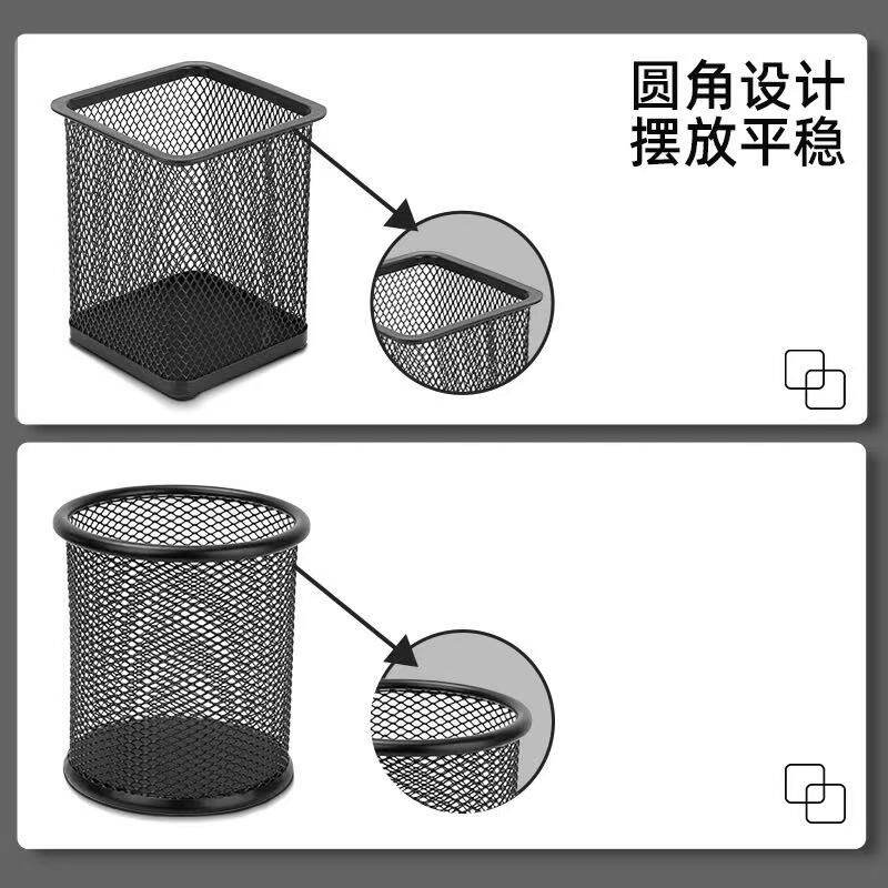 笔筒办公室桌面经典黑色圆形网格大容量装笔放笔学生文具笔座收纳盒摆件金属简约收纳置物多功能收纳专用