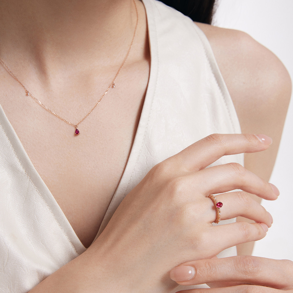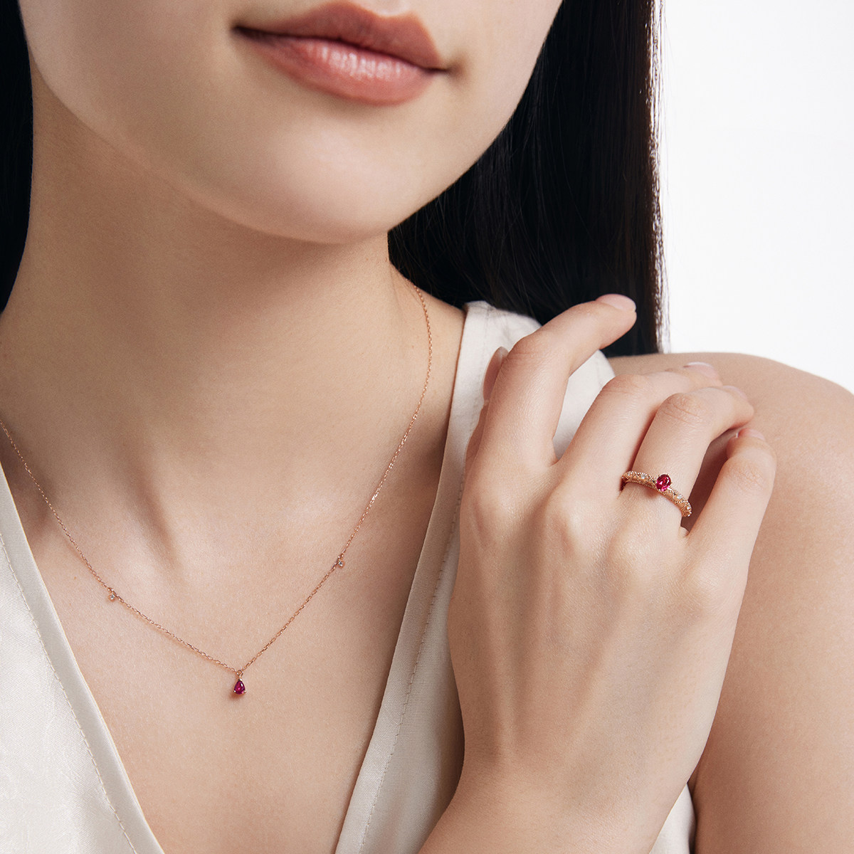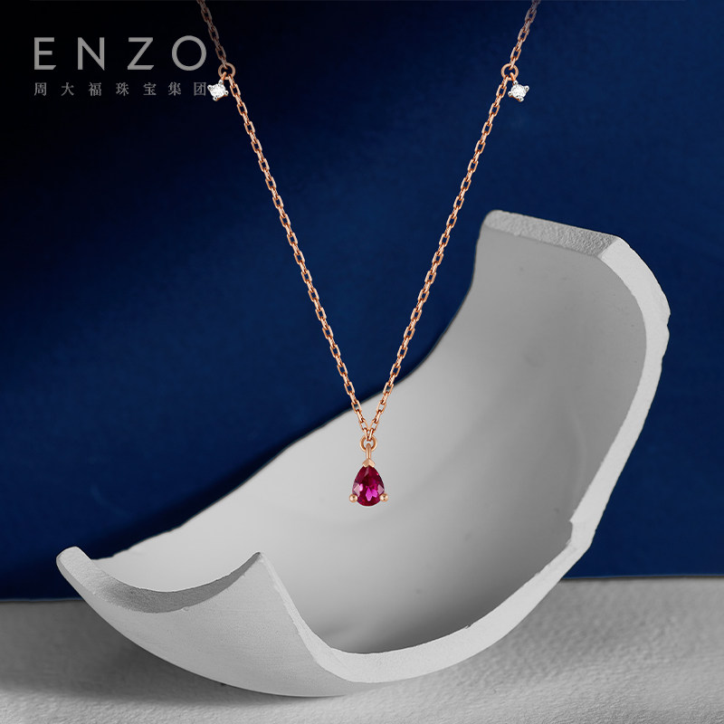 ENZO「经典彩宝」系列18K金红宝石钻石项链女EZV8487节日礼物