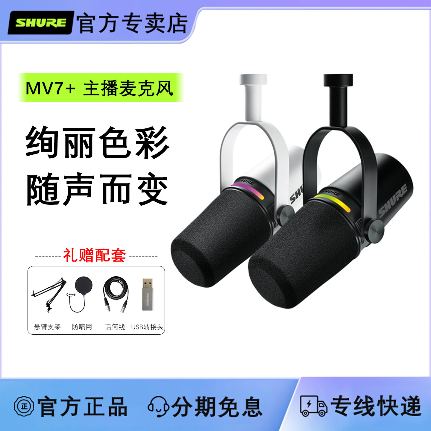 Shure/舒尔 MV7+专业USB麦克风电脑手机直播录音配音动圈主播话筒