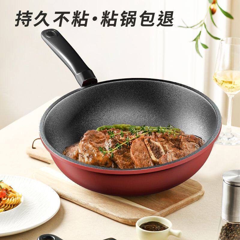 韩国麦饭石不粘锅炒锅家用原装进口电磁炉燃气灶专用不沾锅炒菜锅