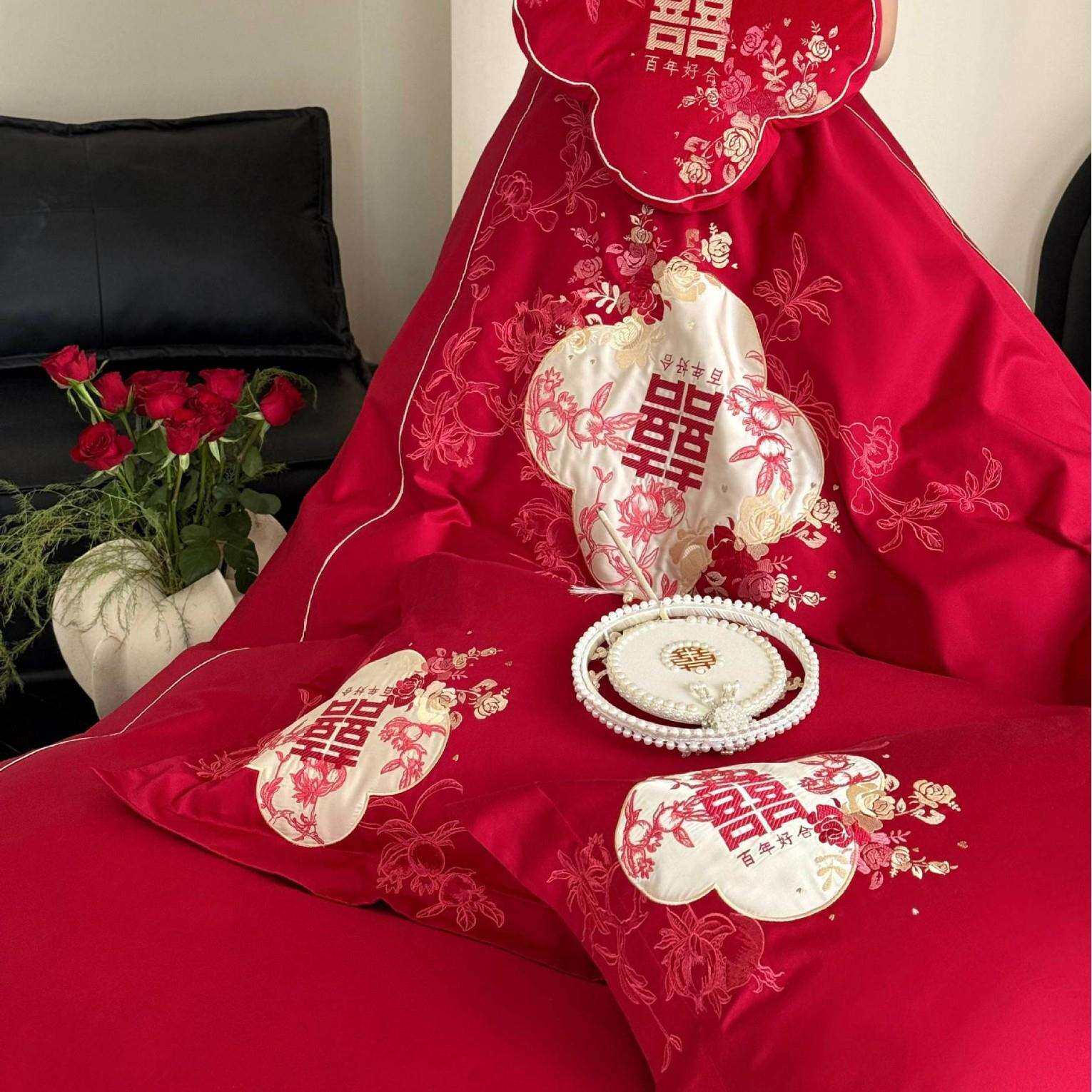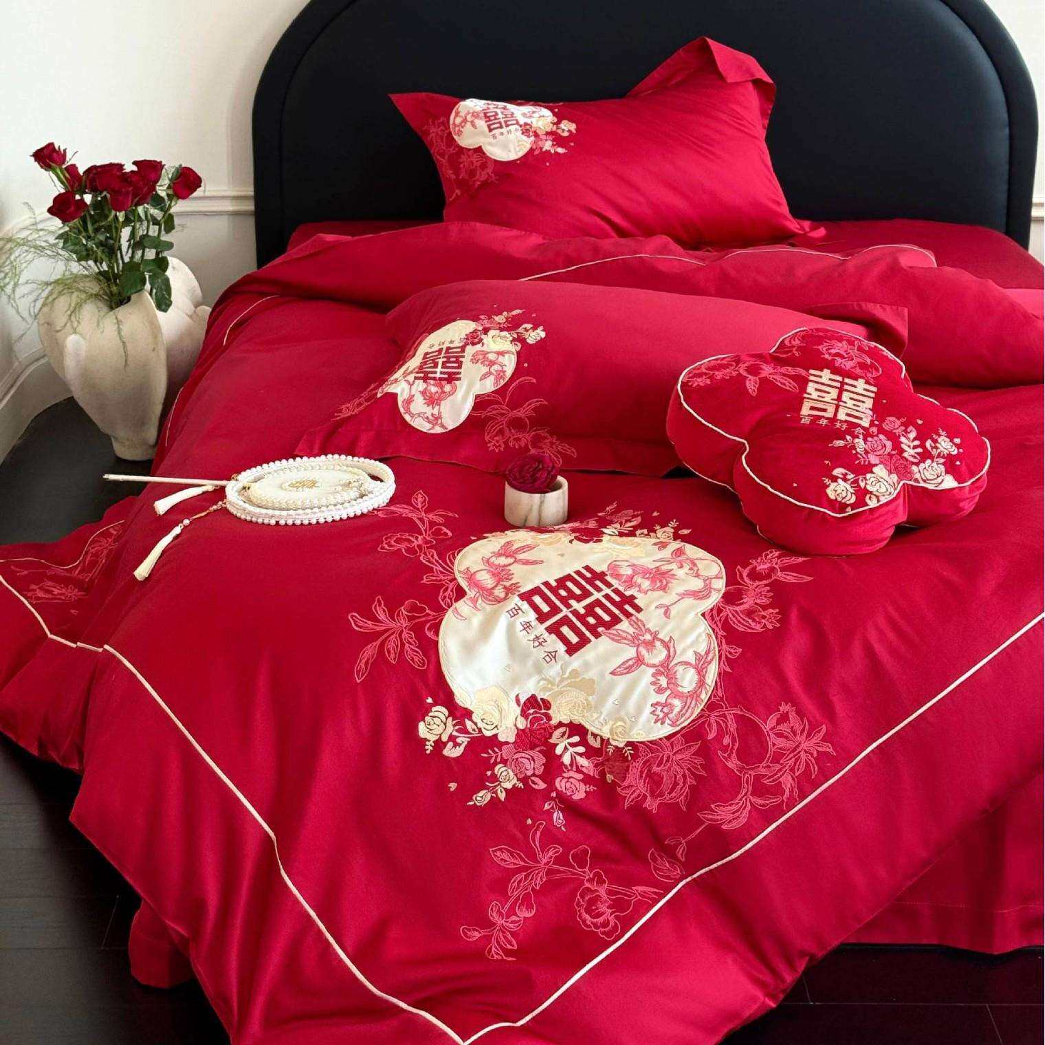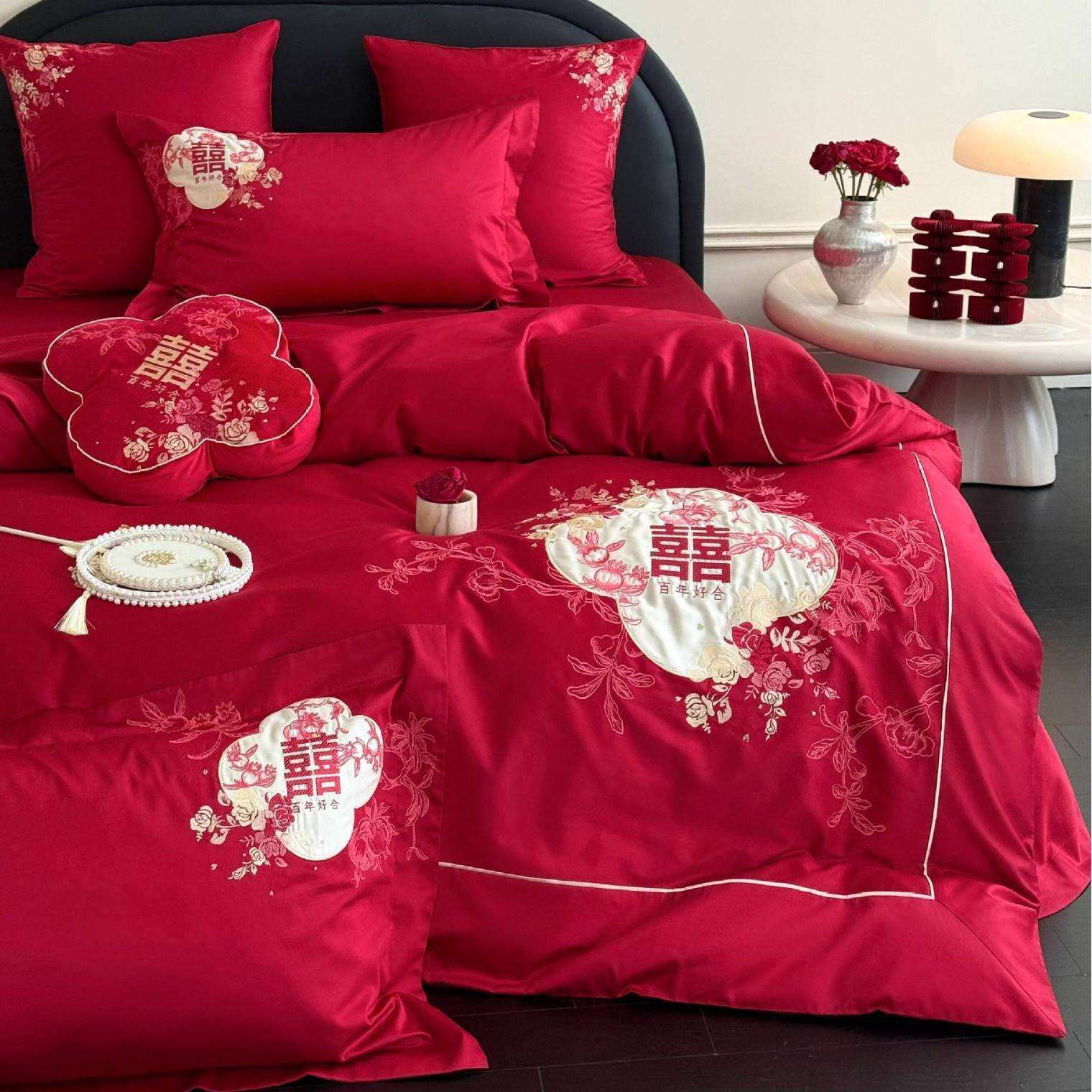 2025秋冬新款100S长绒棉纯棉婚庆四件套十全十美婚礼用品结婚套件