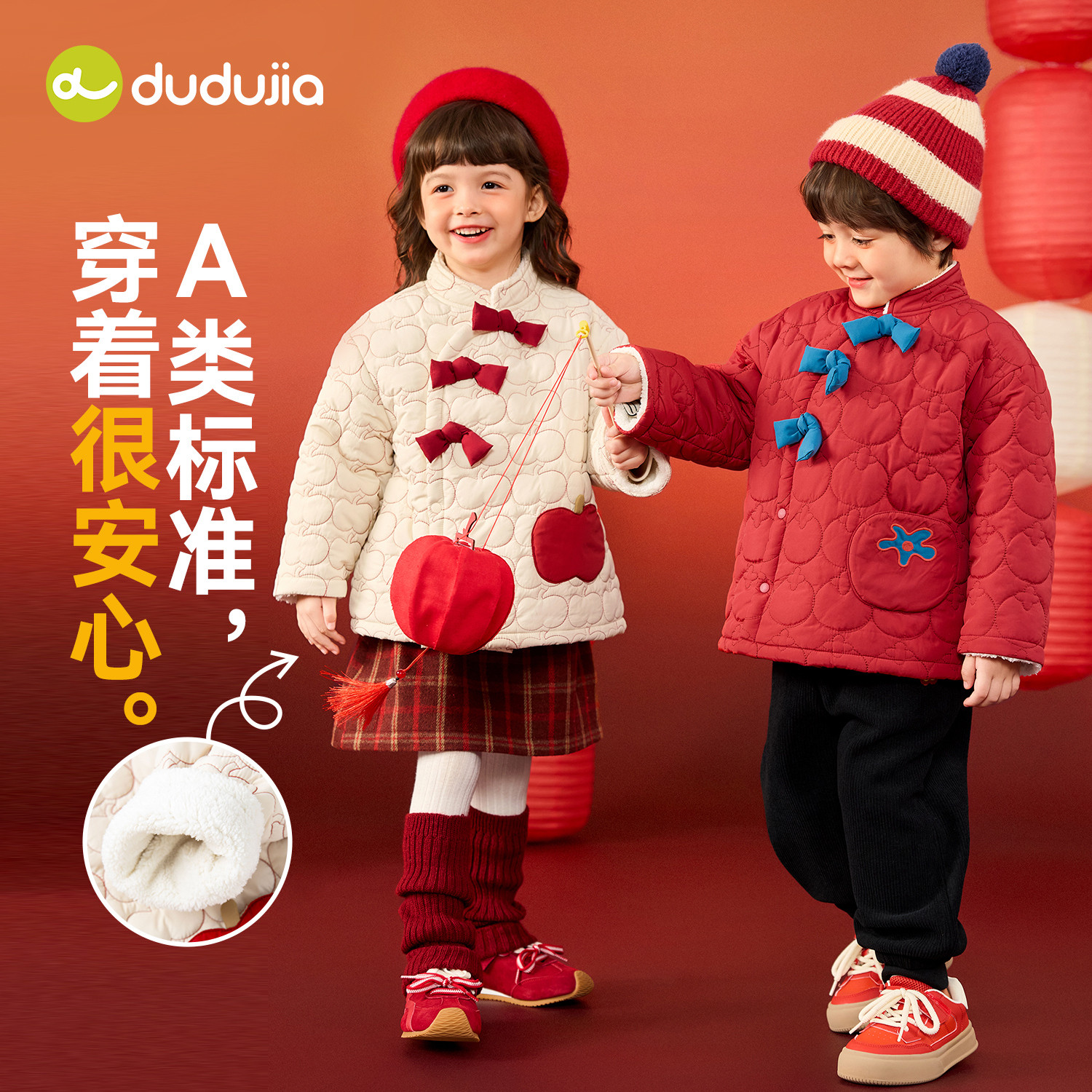 嘟嘟家男童唐装棉服冬季儿童新中式拜年服宝宝新年装棉衣女童棉袄