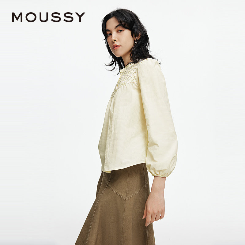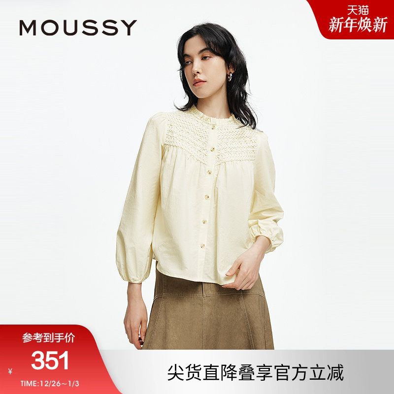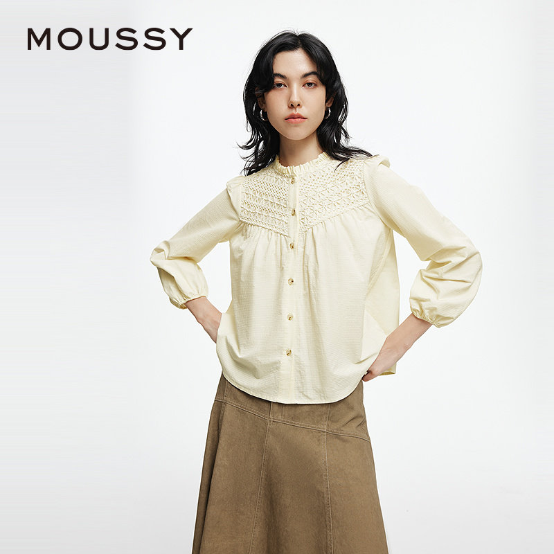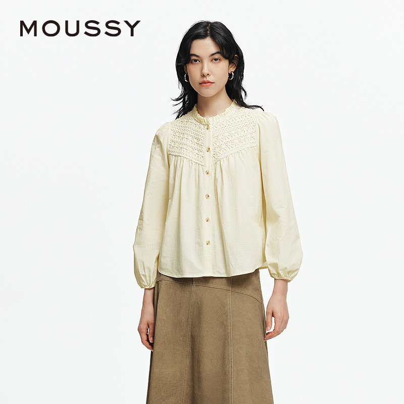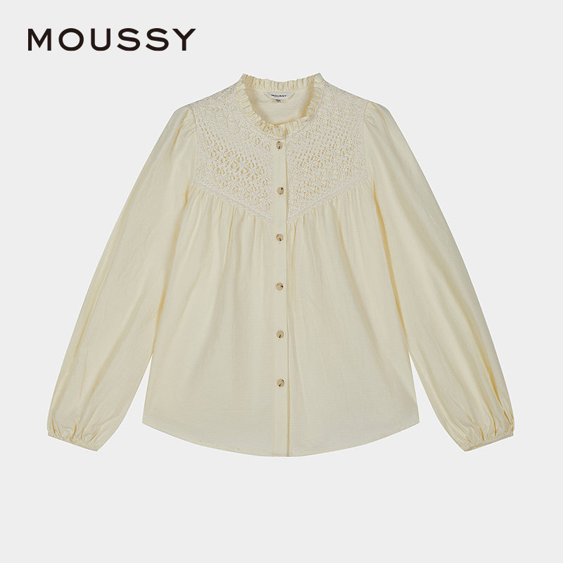 moussy 2025春季新品甜美文艺风花边领纯色长袖衬衫028ISA30-3341
