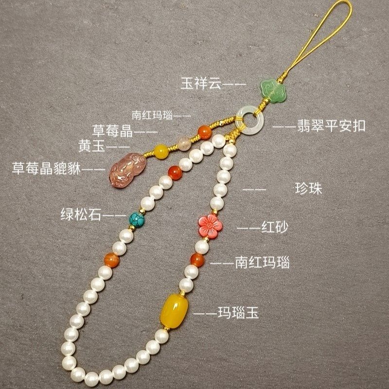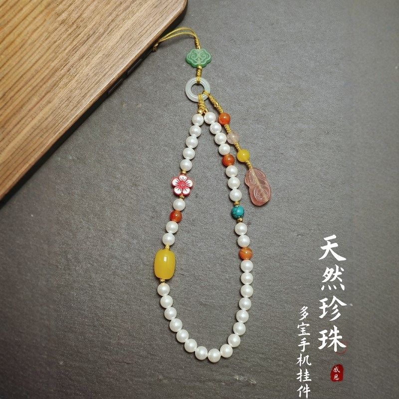 天然珍珠手机链挂绳手腕款多宝财源貔貅男女款手机U挂件挂饰链礼