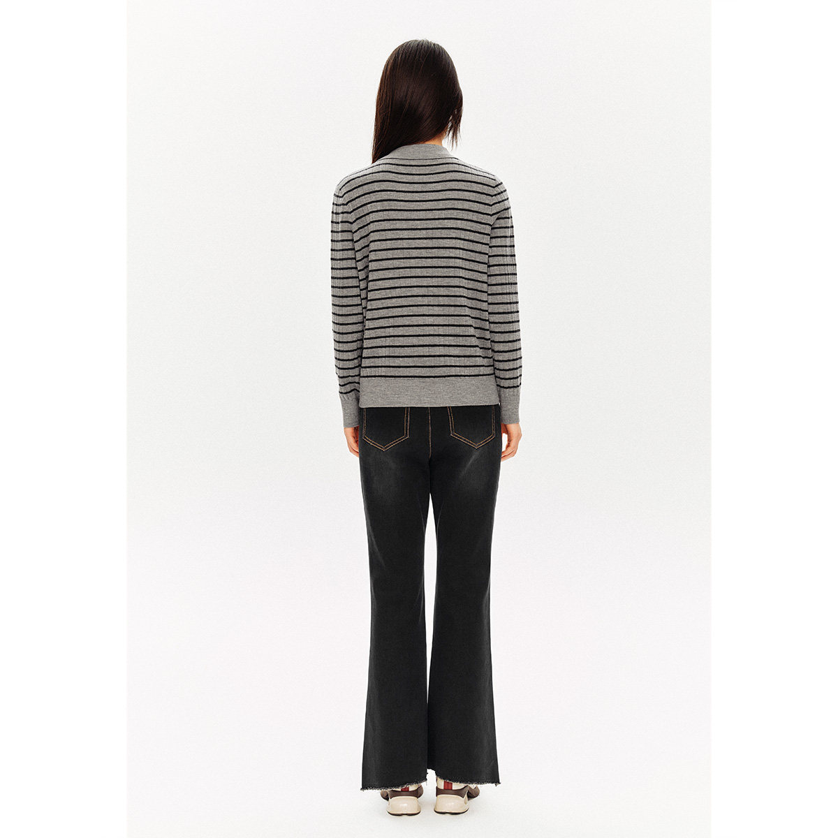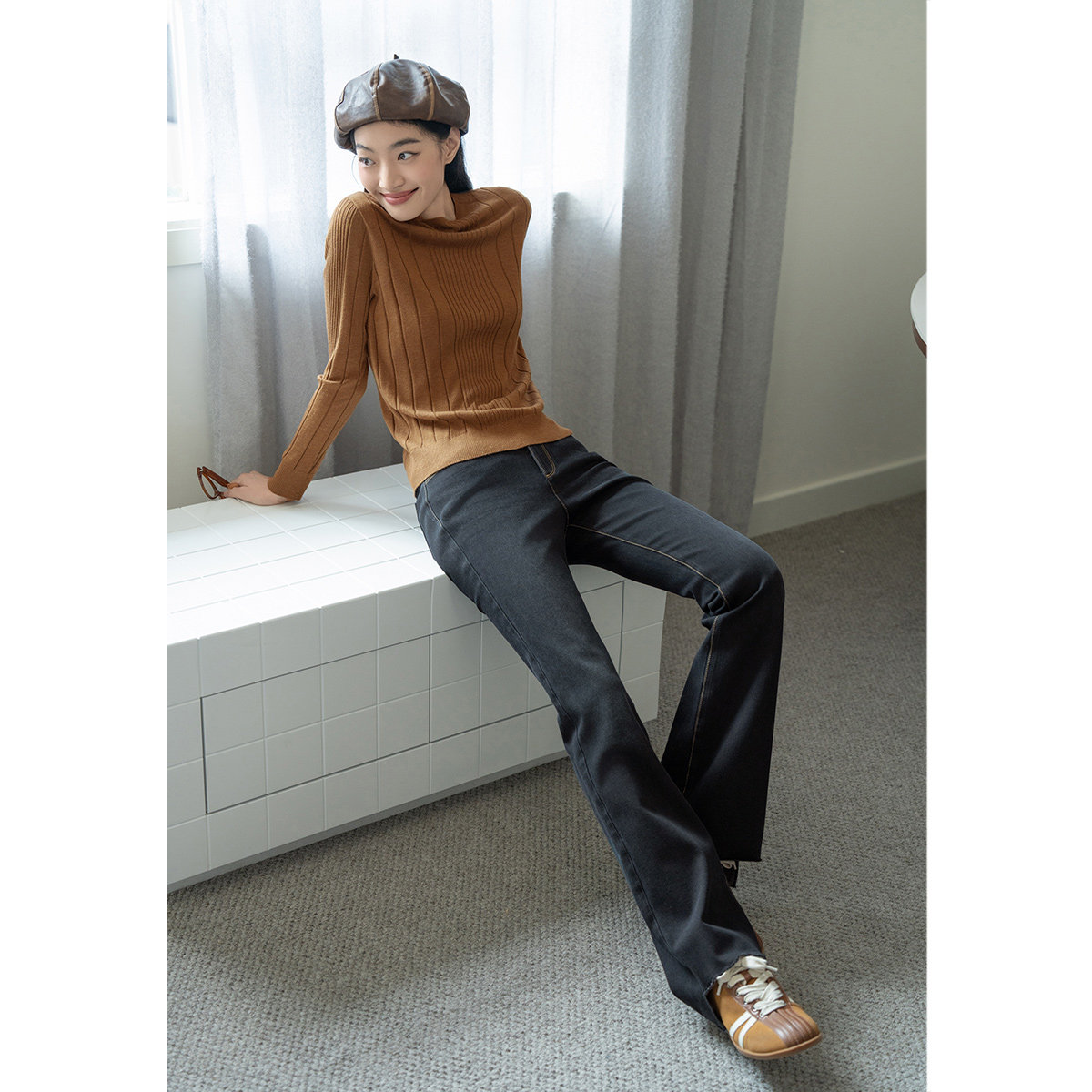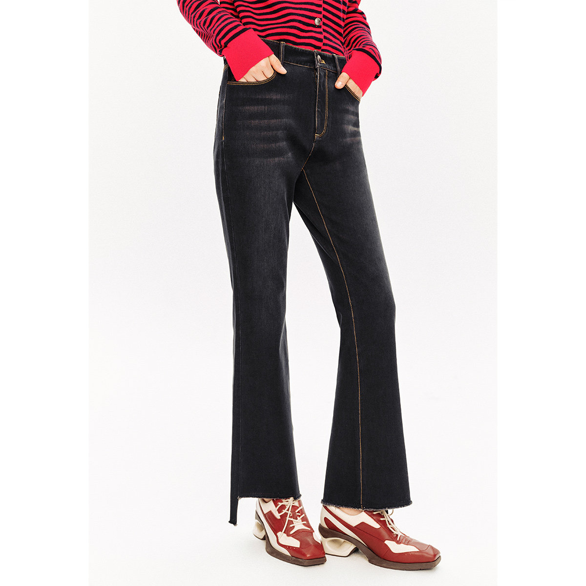 PSALTER诗篇火山岩莱卡薄绒修身显瘦复古微喇裤牛仔裤冬款