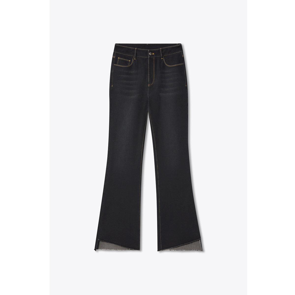 twosweet【超级裤神】四面弹重塑大长腿高腰直筒微喇叭原色牛仔裤