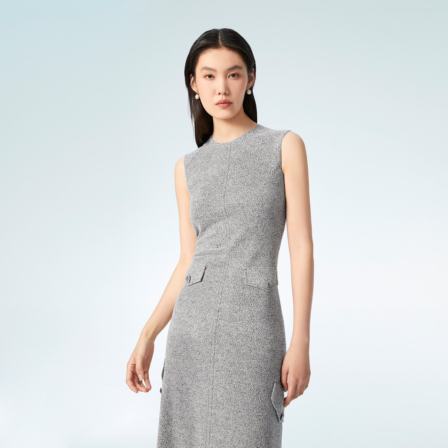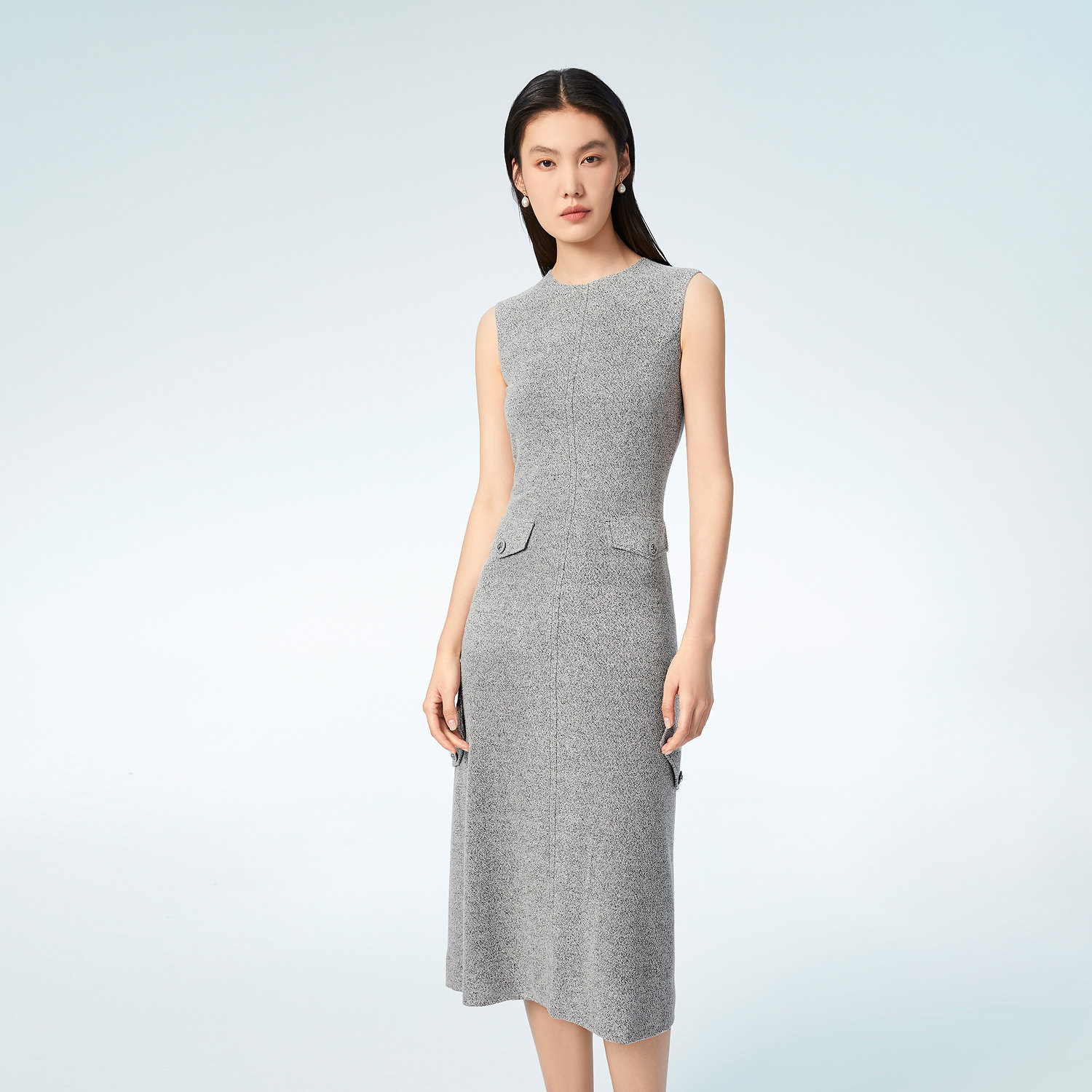 OVV春夏热卖女装简约大气弹力H型经典圆领休闲无袖连衣裙