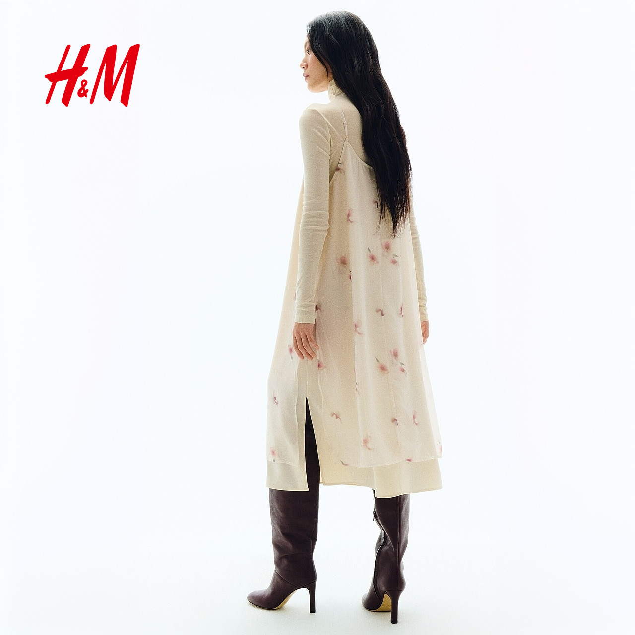 HM女装连衣裙2026春季新款层叠印花吊带宽松时尚连身裙1322621