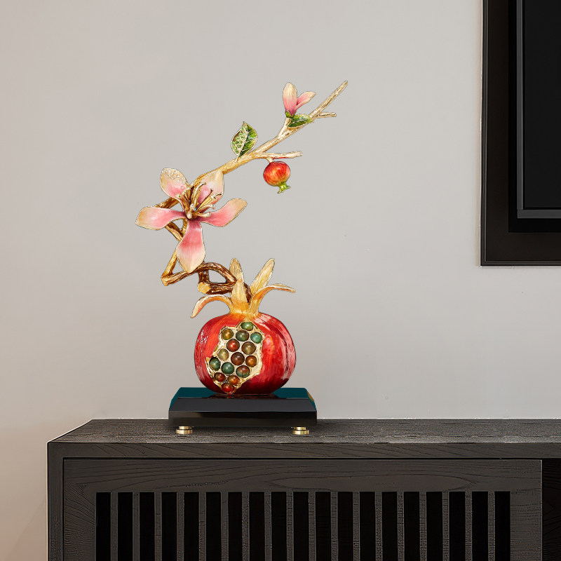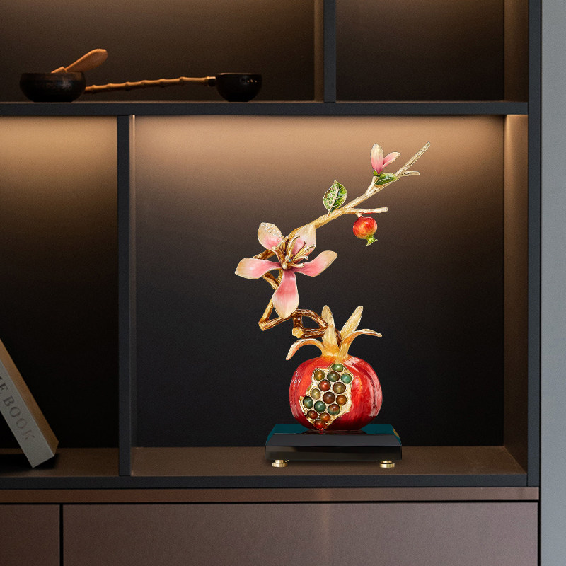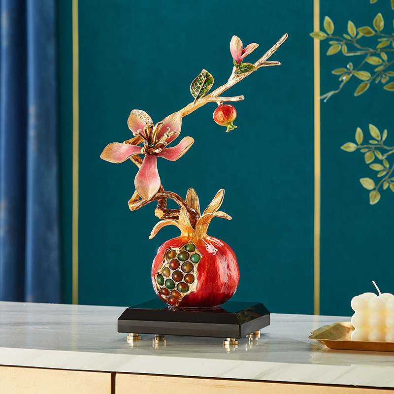 石榴摆件新中式合金珐琅彩摆件多籽多福结婚乔迁礼物家居玄关装饰