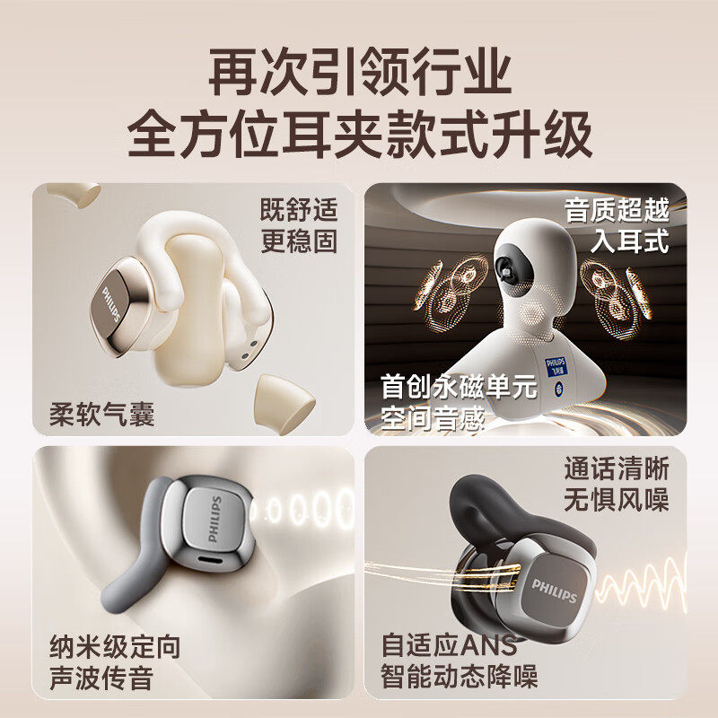 飞利浦TAQ4220蓝牙耳机不入耳夹式2025新款无线气骨传导运动高端