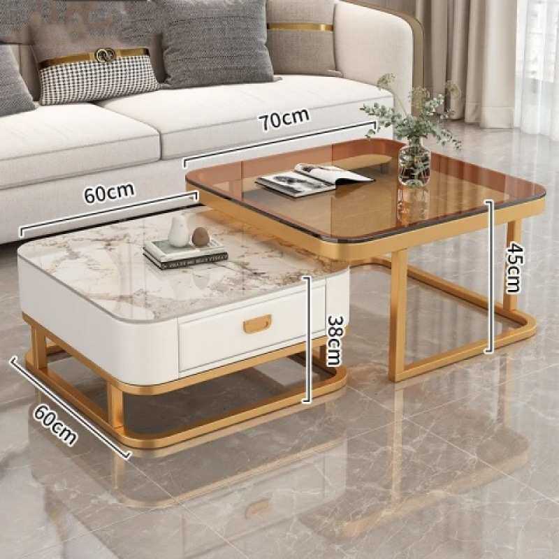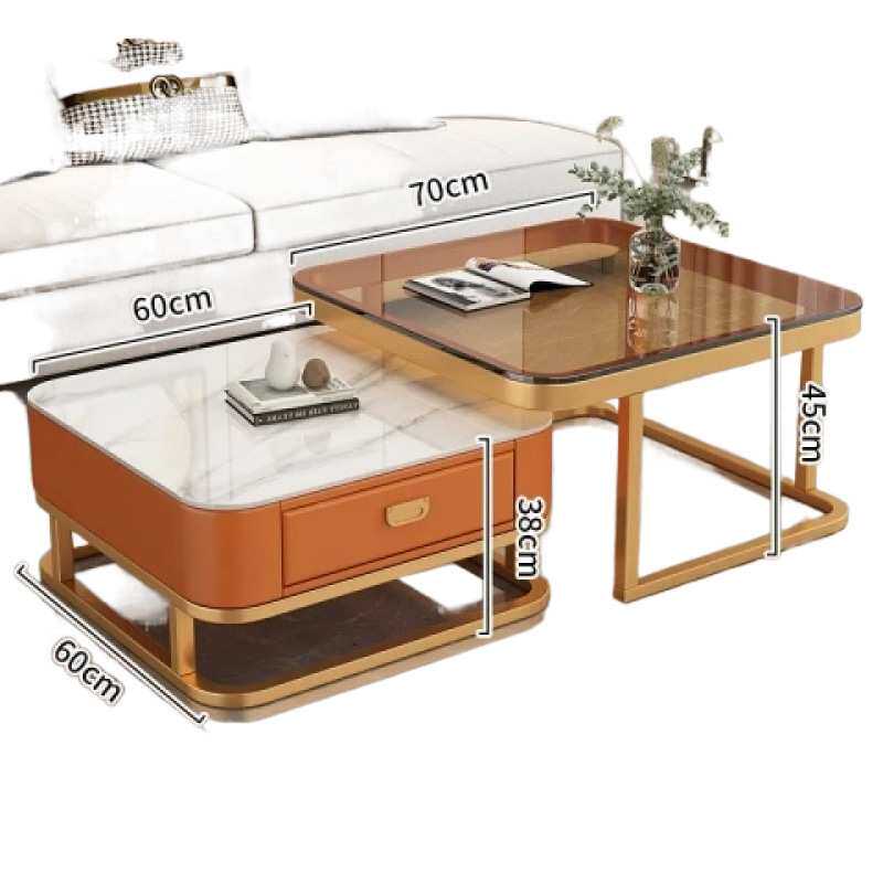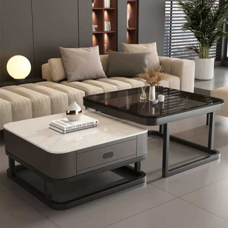 方形茶几客厅家用小户型现代亮面岩板轻奢网红玻璃茶几电视柜组合
