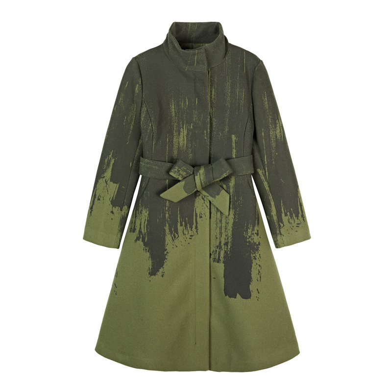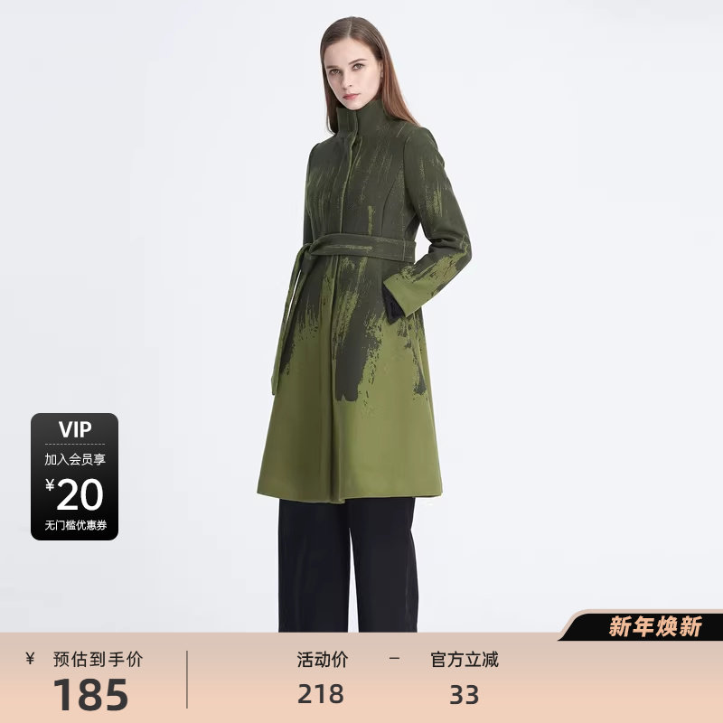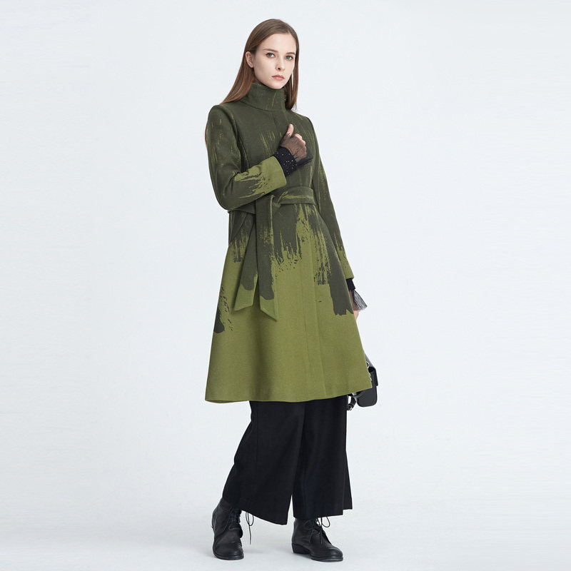 sdeer圣迪奥女装休闲立领晕染收腰中长款毛呢大衣S20481852