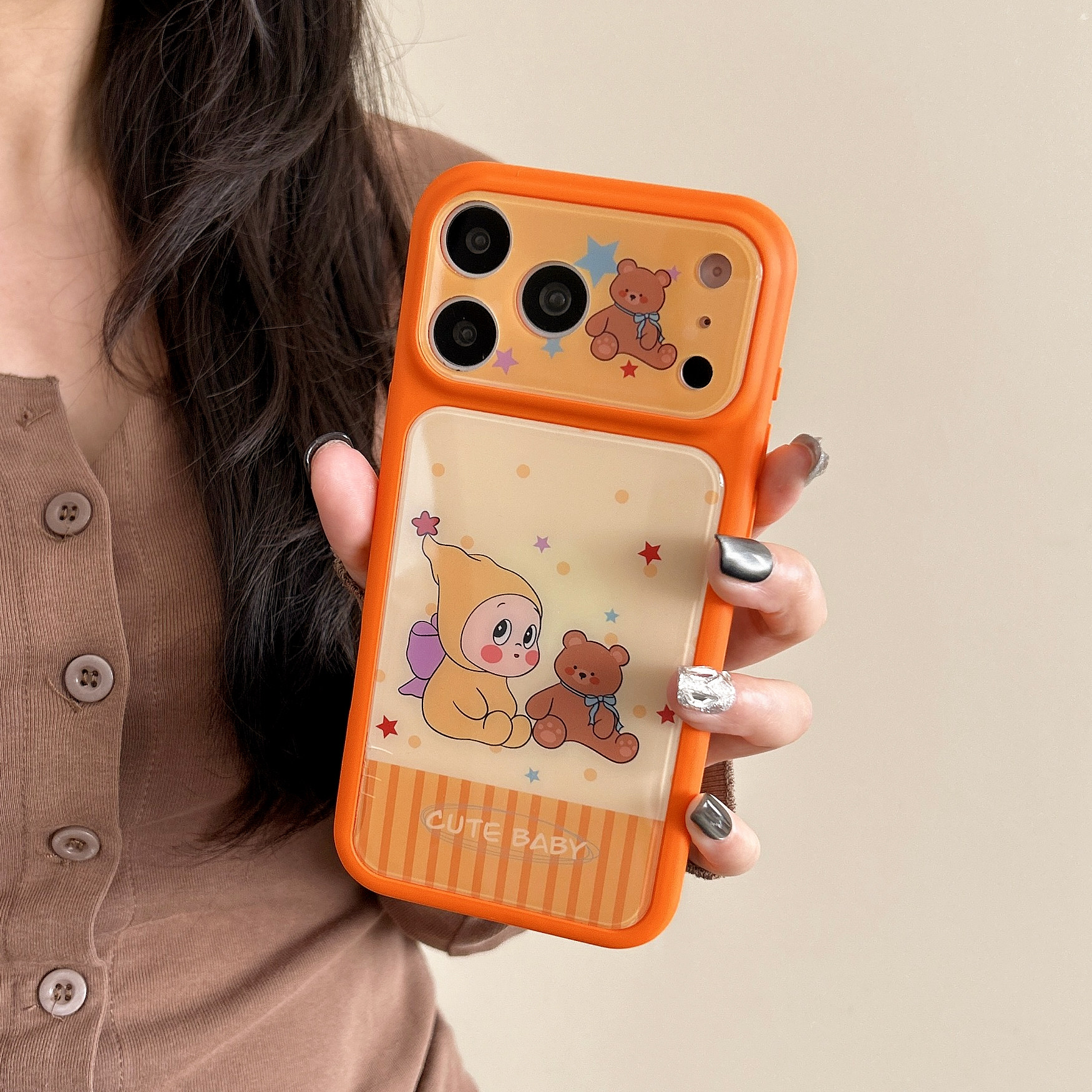 星星人抱熊可爱公仔适用iPhone17ProMax手机壳卡通小黄星星人苹果16pro保护套少女风小红书同款14/15PM外壳17