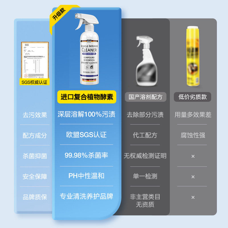 汽车内饰清洗剂顶棚真皮革座椅泡沫清洁剂车内免水洗清洁洗车神器