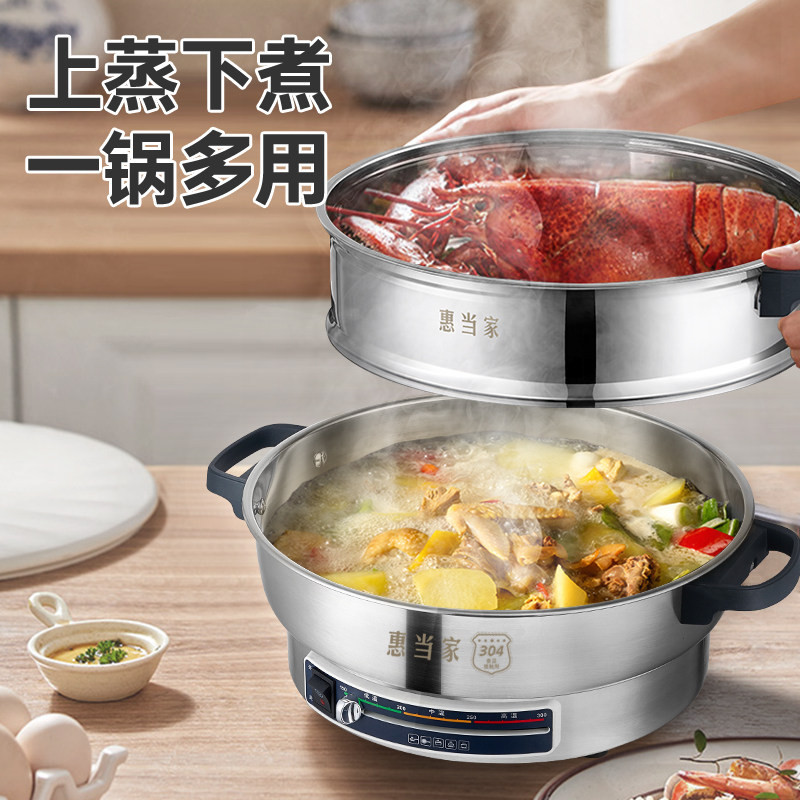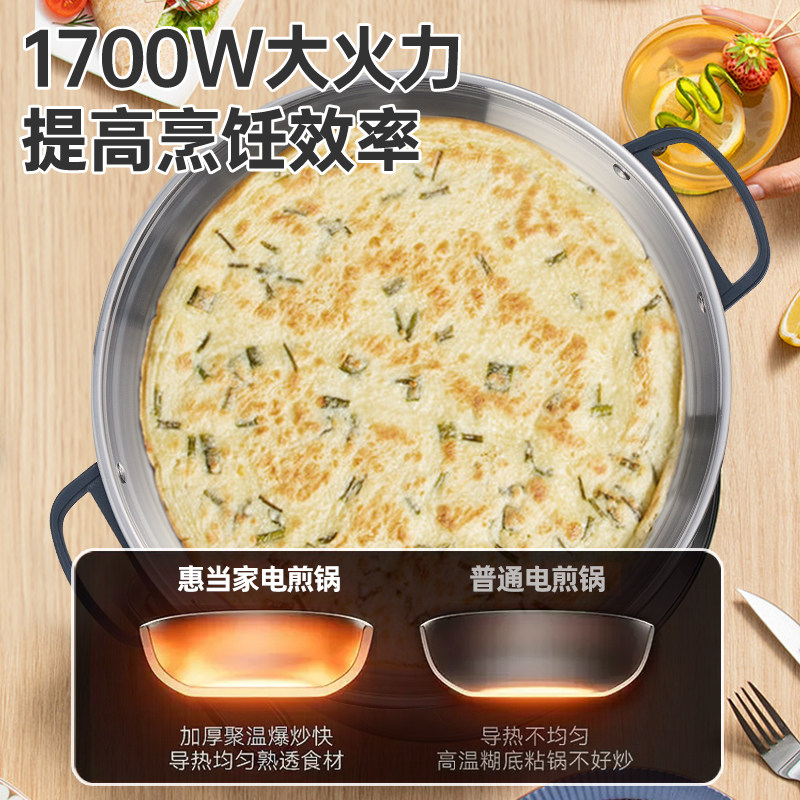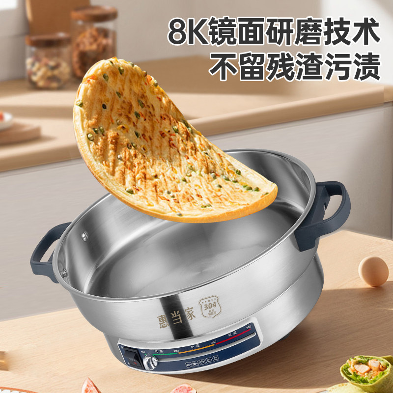 惠当家电饼铛304不锈钢家用电煎锅加大加深8K镜面电烙饼锅多功能