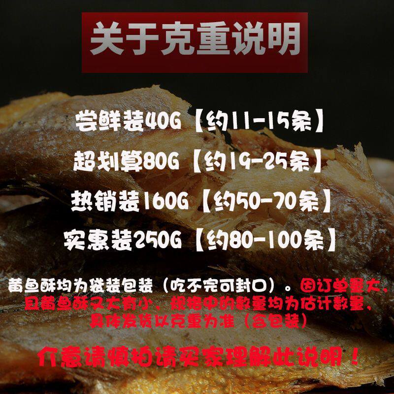 野生黄鱼酥干小黄鱼鱼干东海特产即食休闲小吃250g/40g香酥