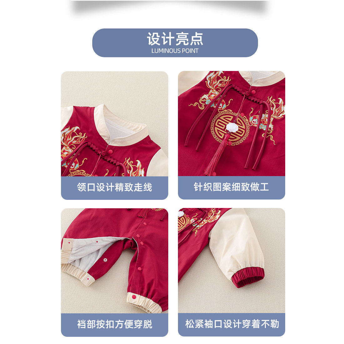 婧麒宝宝周岁礼服中式唐装秋冬国风儿童喜庆衣服婴儿汉服连体冬装