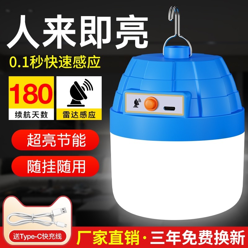 充电雷达人体感应灯无线楼道楼梯走廊过道室外厕所充电式led灯泡