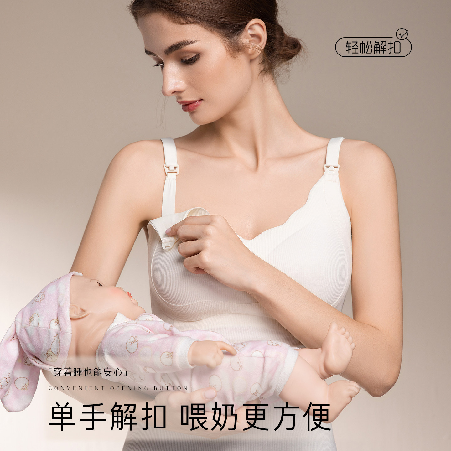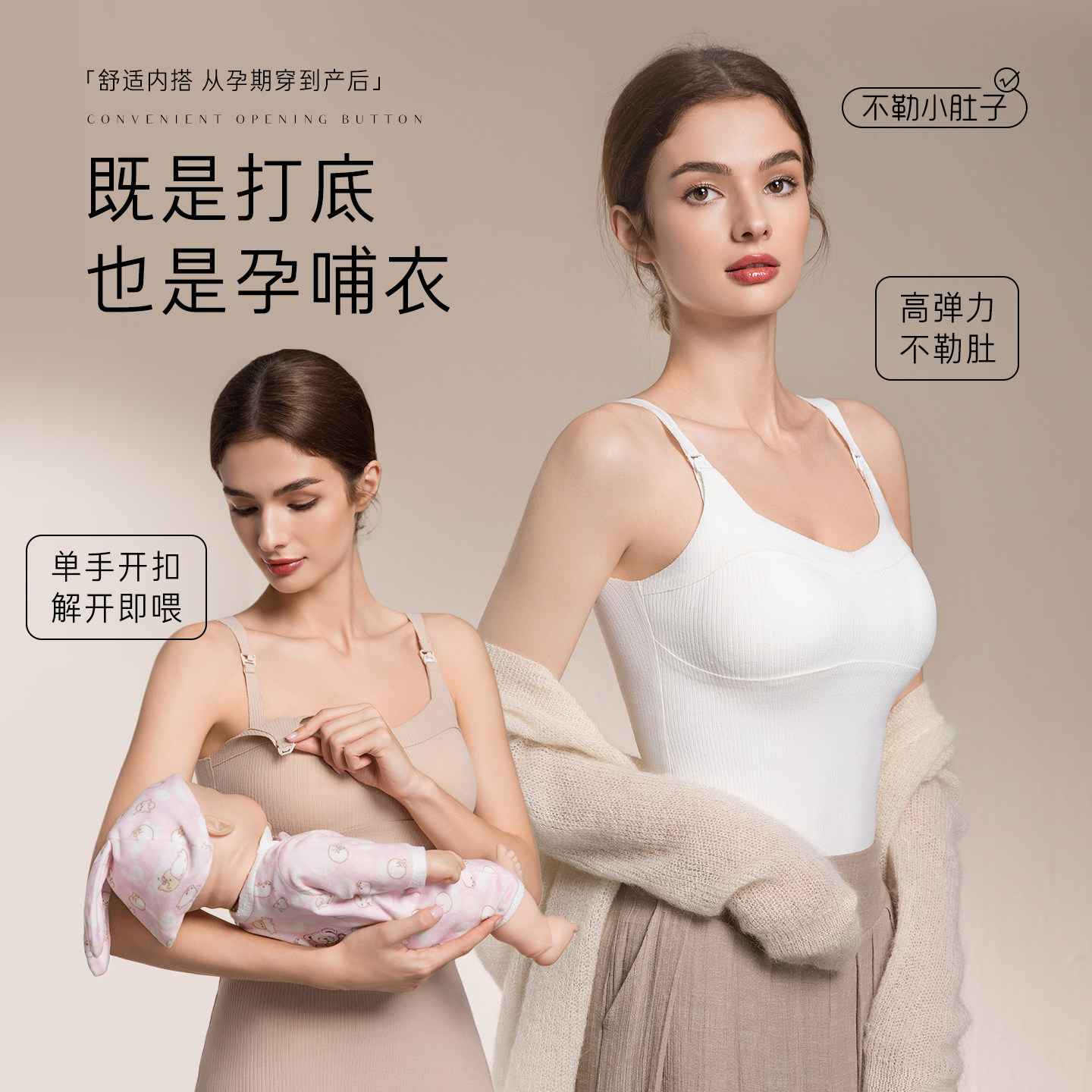 婧麒哺乳吊带背心产后喂奶哺乳期防走光免穿文胸打底孕妇内衣秋冬