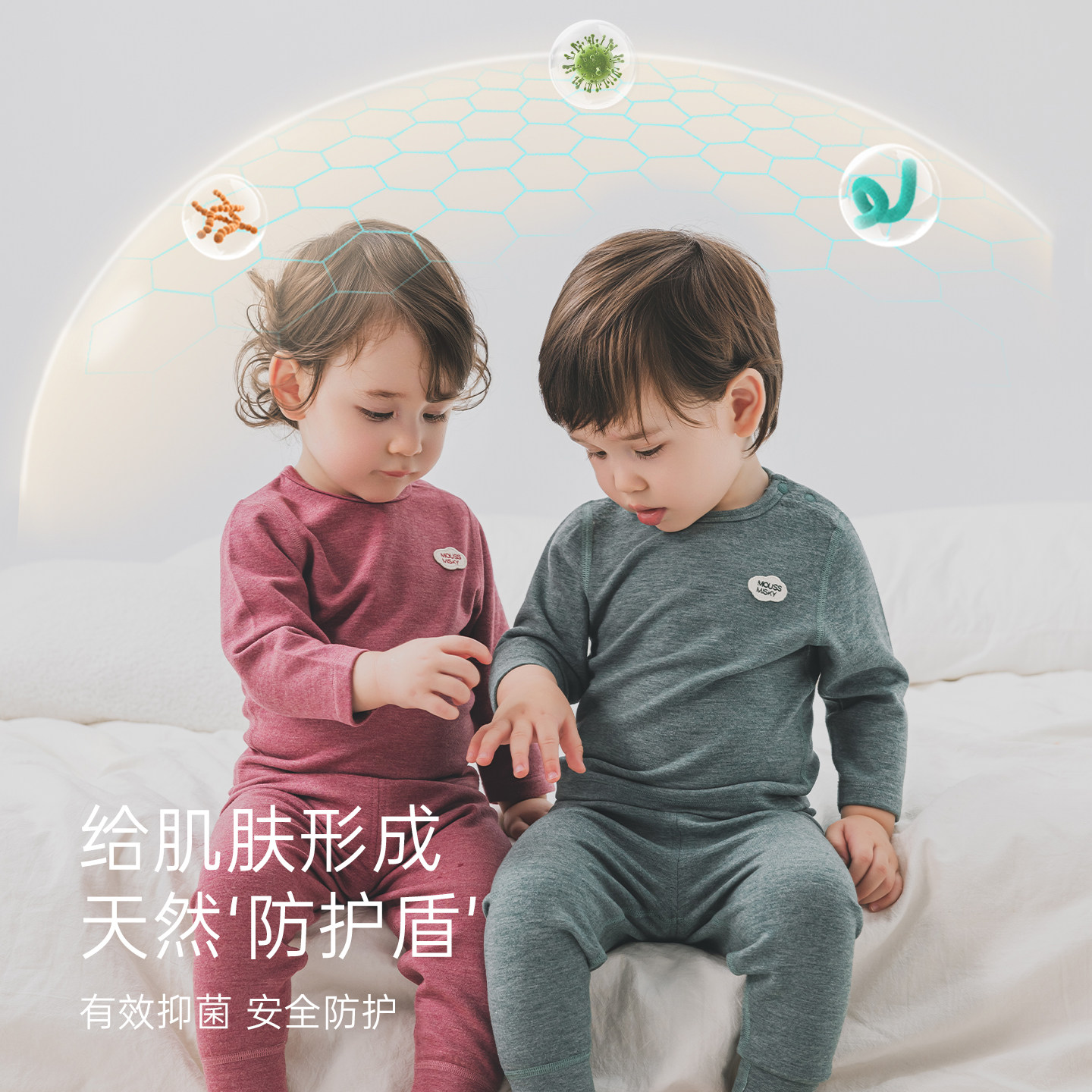 【双面绒】男女宝宝蚕丝羊毛分体套装秋冬季婴儿保暖内衣上衣裤子