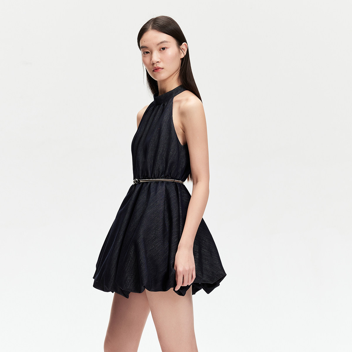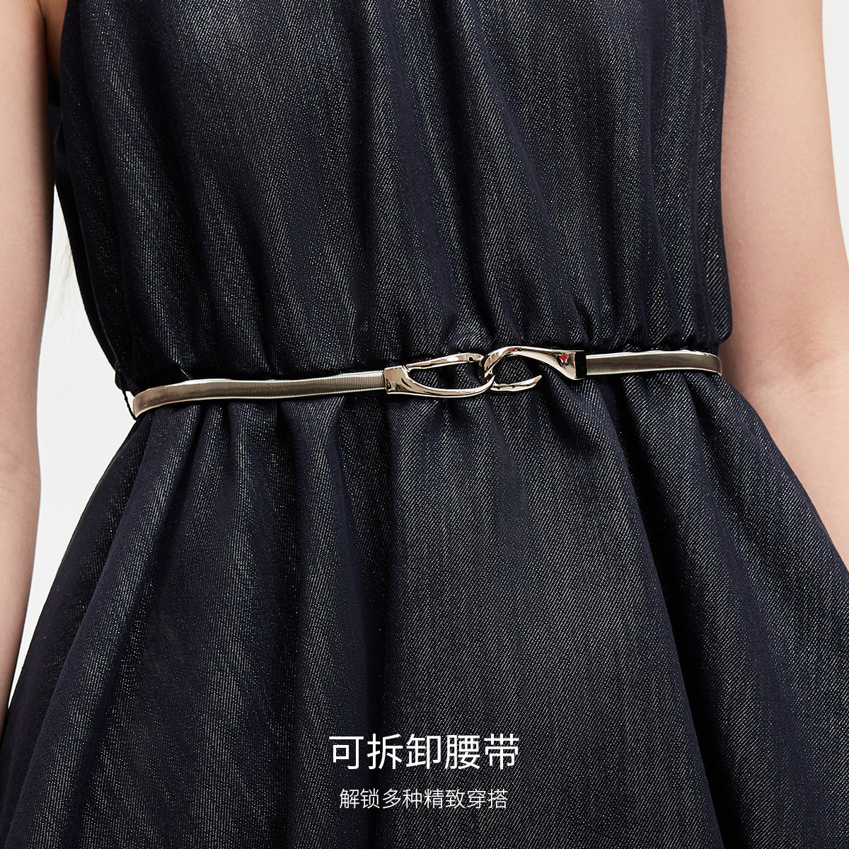 Vero Moda连衣裙2026春季新款可拆卸腰带亮闪面料挂脖裙326142001