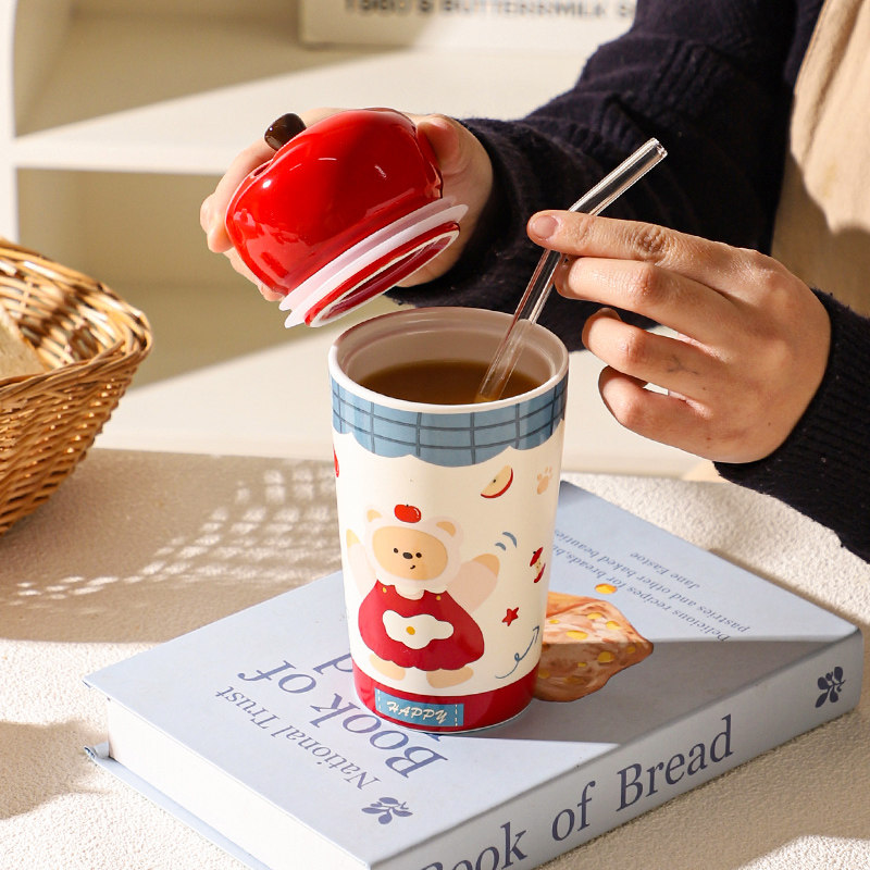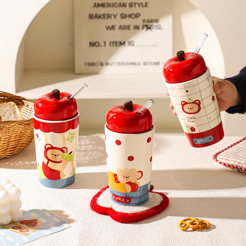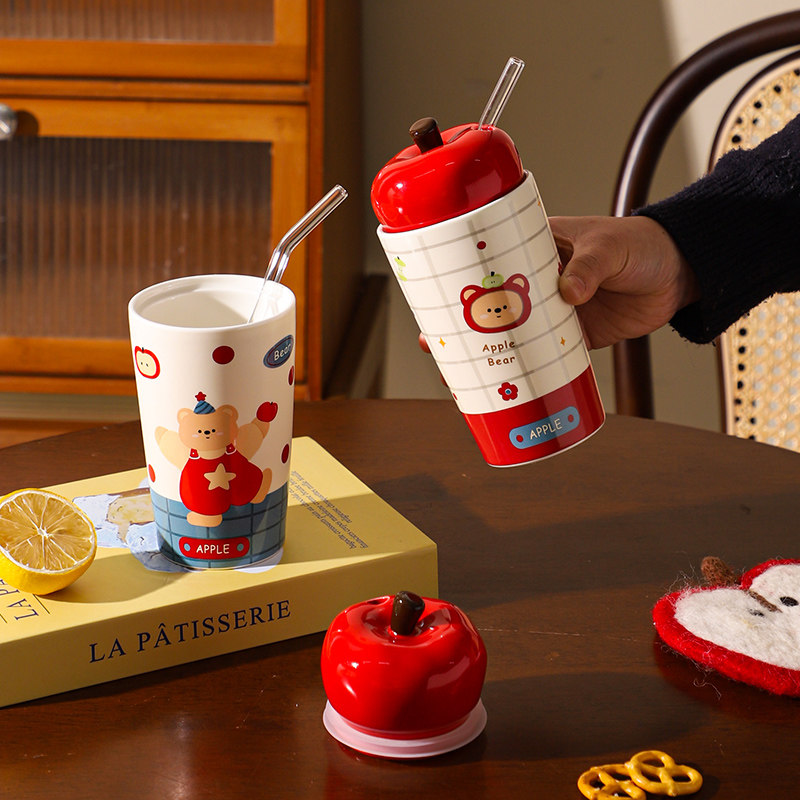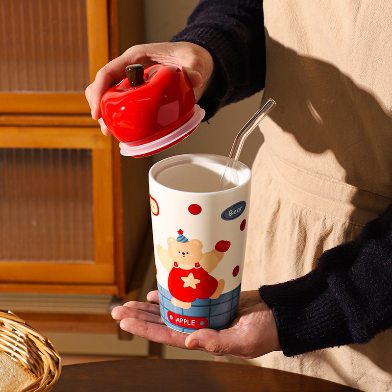 舍里苹果马克杯女带盖陶瓷咖啡杯家用高颜值水杯实用圣诞礼物杯子