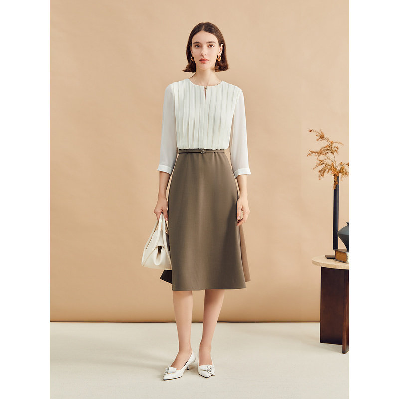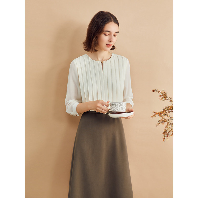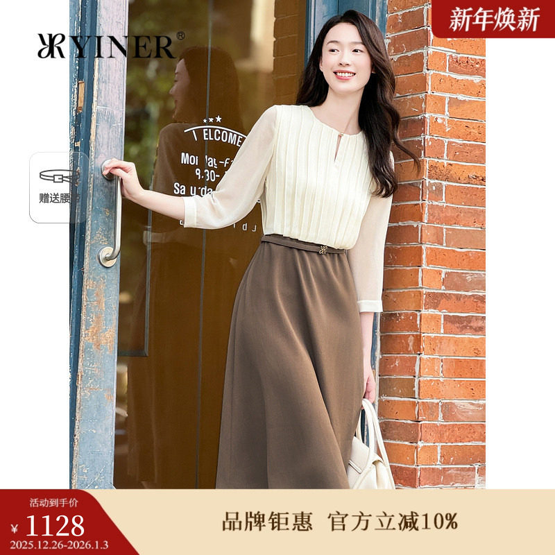 【优雅衣橱】YINER音儿专选秋季法式风琴褶雪纺轻薄假两件连衣裙