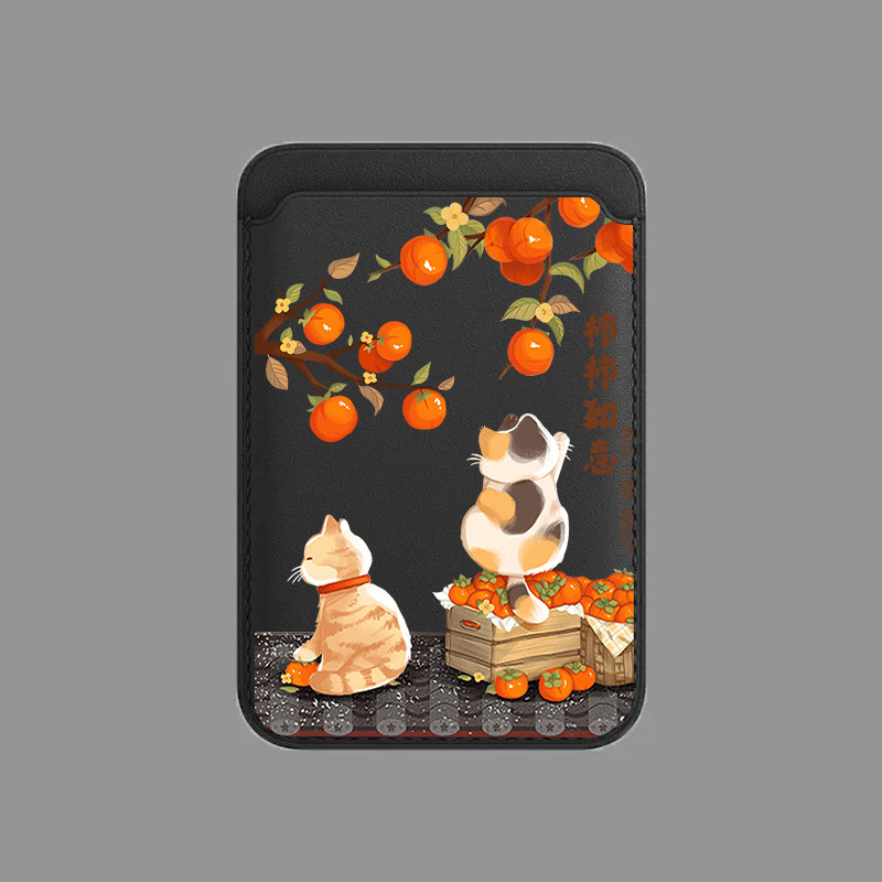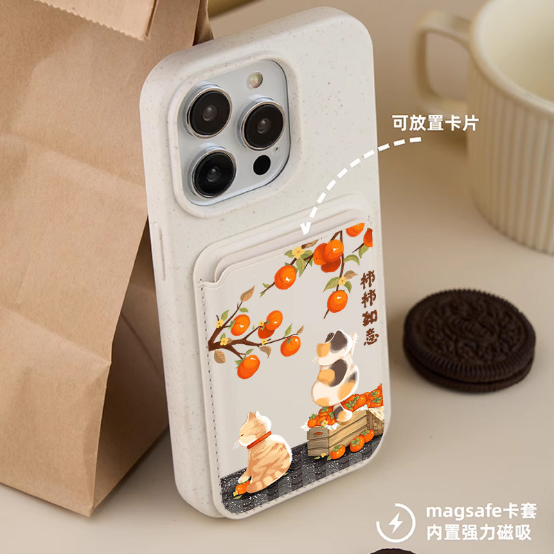柿柿如意magsafe磁吸卡包适用苹果iphone15promax皮革14plus同款真皮卡套13mini小众手机壳皮质配件门禁卡通