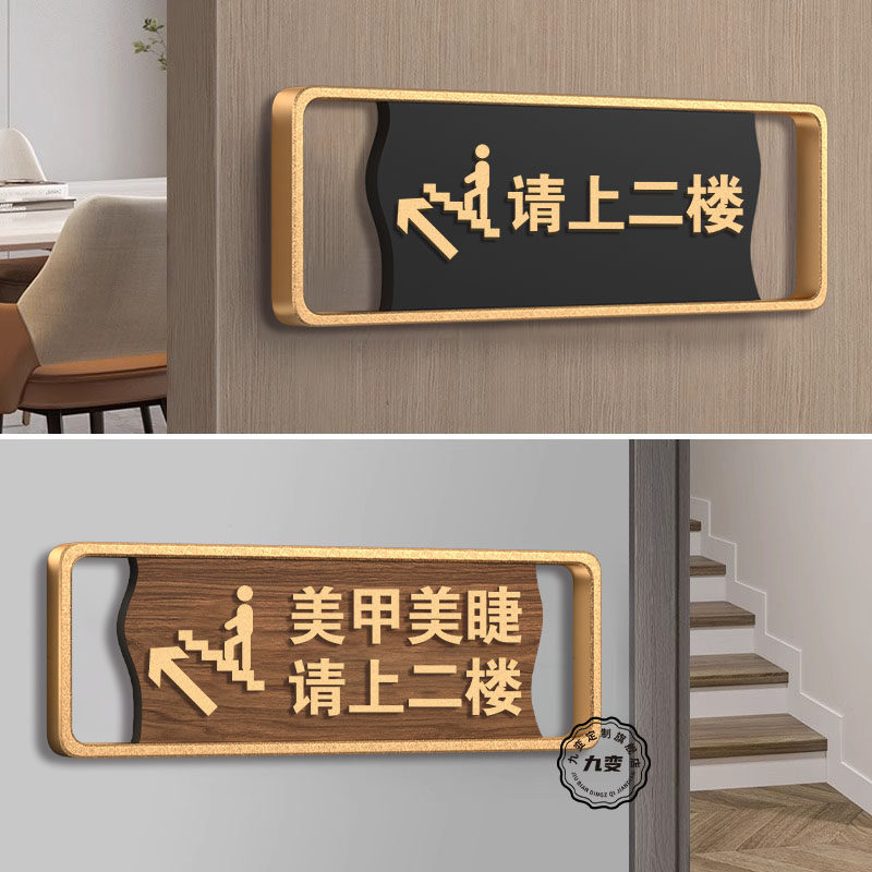 请上二楼指示牌夜光发光棋牌室包厢美容院请上二楼墙贴美甲美睫由此上楼由此下楼提示牌卫生间标志牌门牌定制