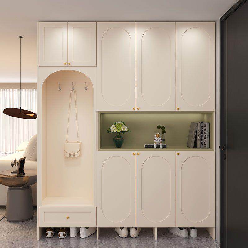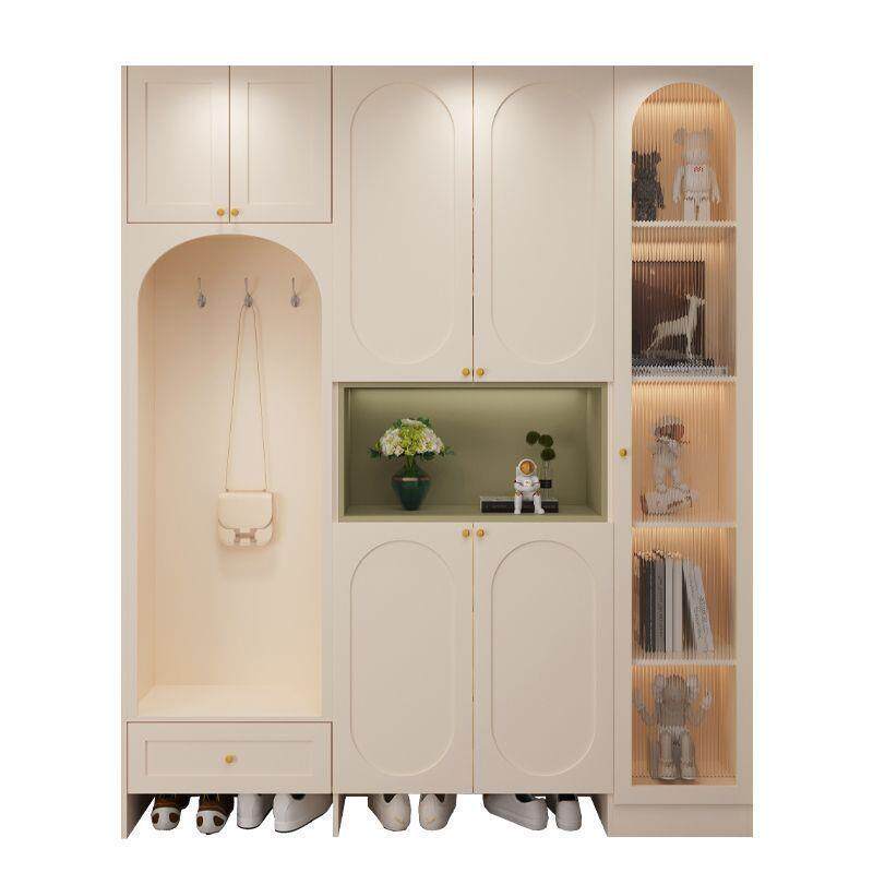 奶油风鞋柜玄关柜坐凳一体家用门口高柜收纳柜入户到顶衣帽柜