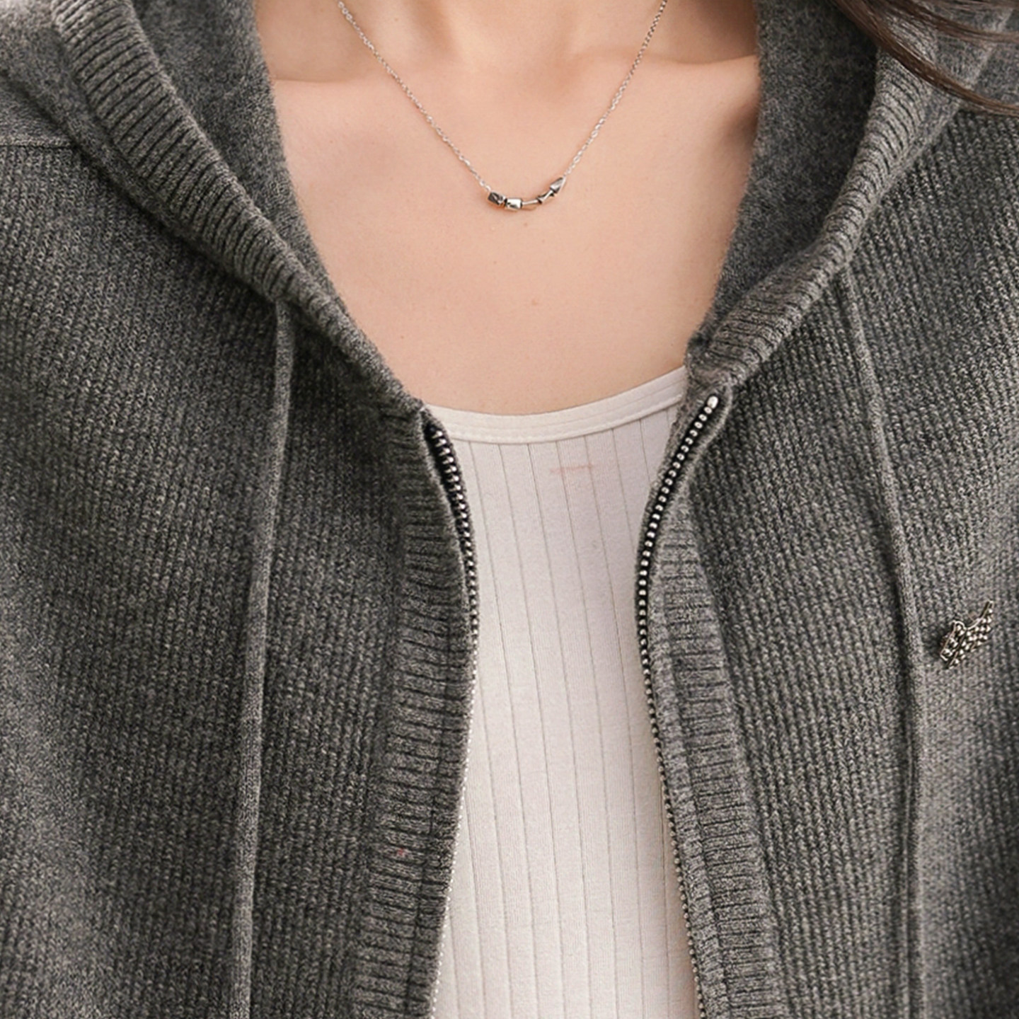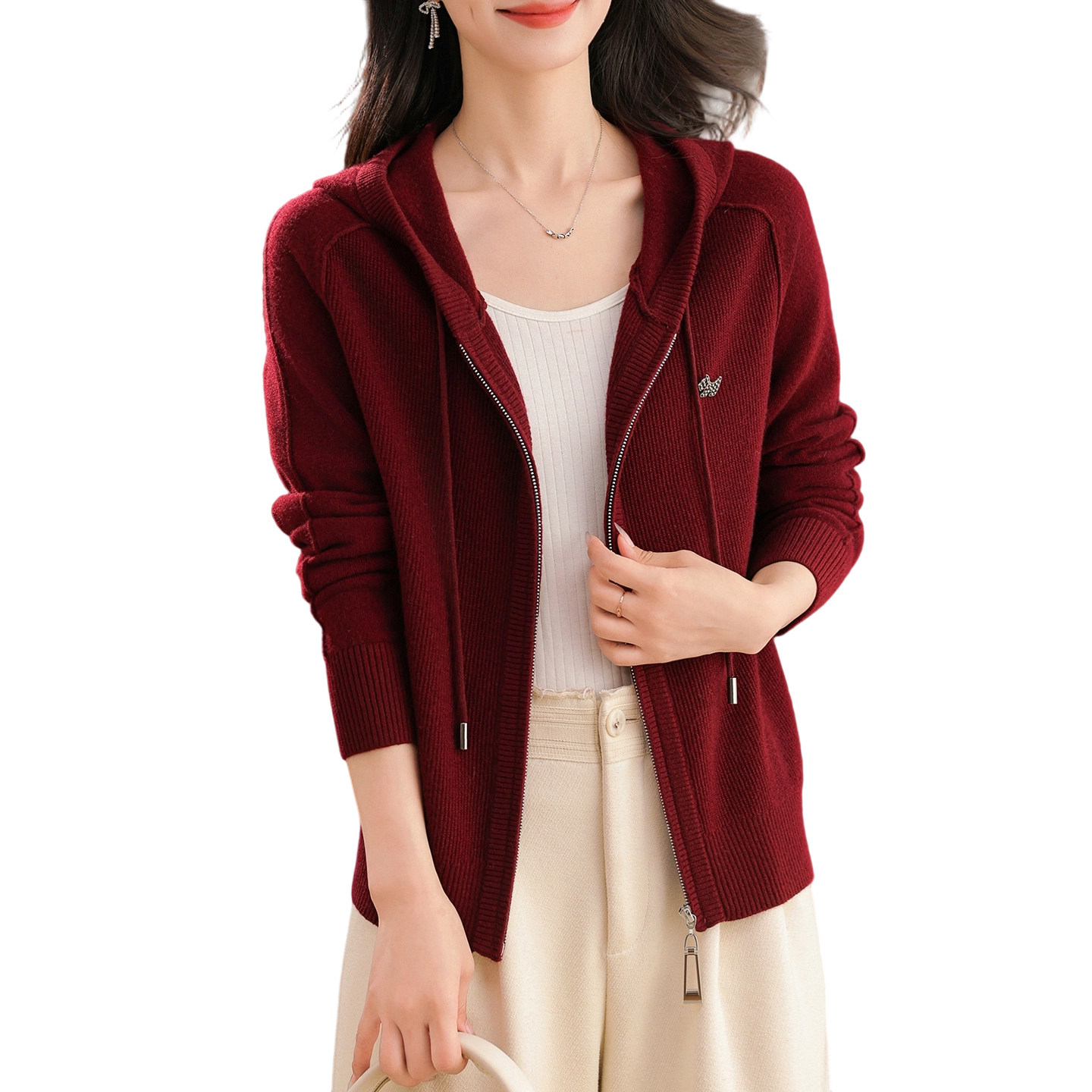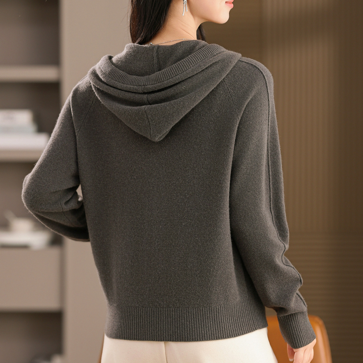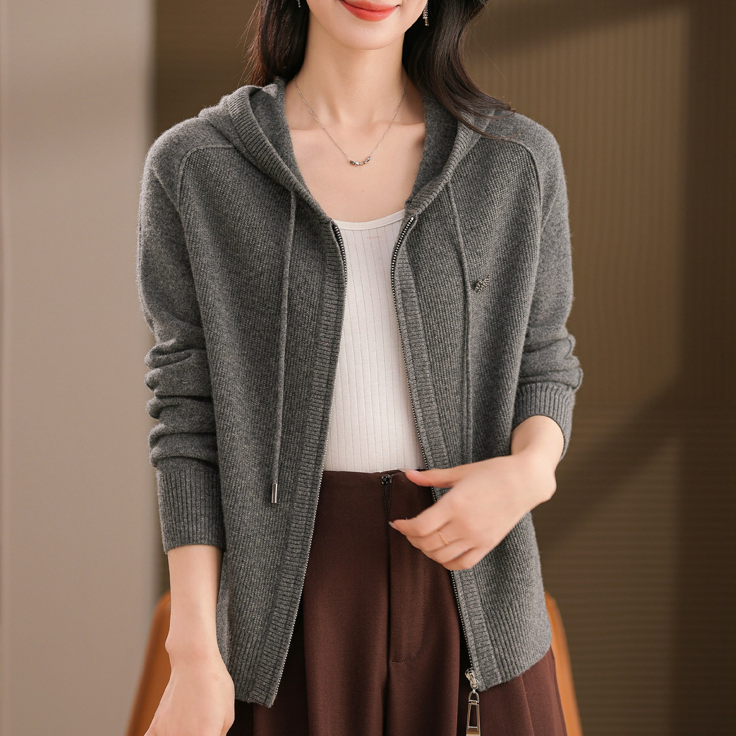 恒源祥100%羊毛衫连帽开衫女士宽松时尚纯羊毛卫衣毛衣外套针织衫