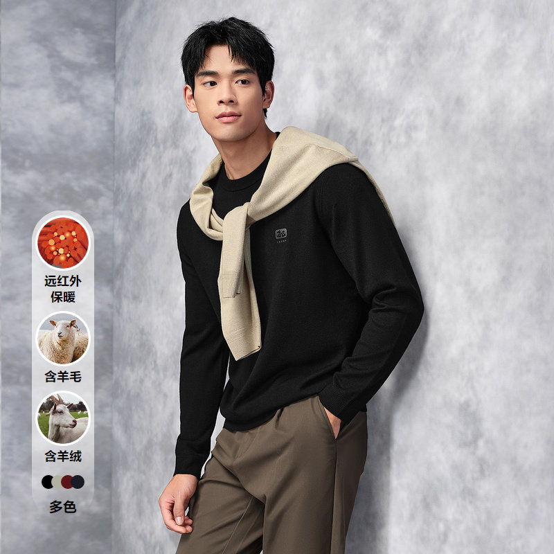 HLA/海澜之家中华龙针织衫秋圆领含羊毛含羊绒老钱风远红外长袖男