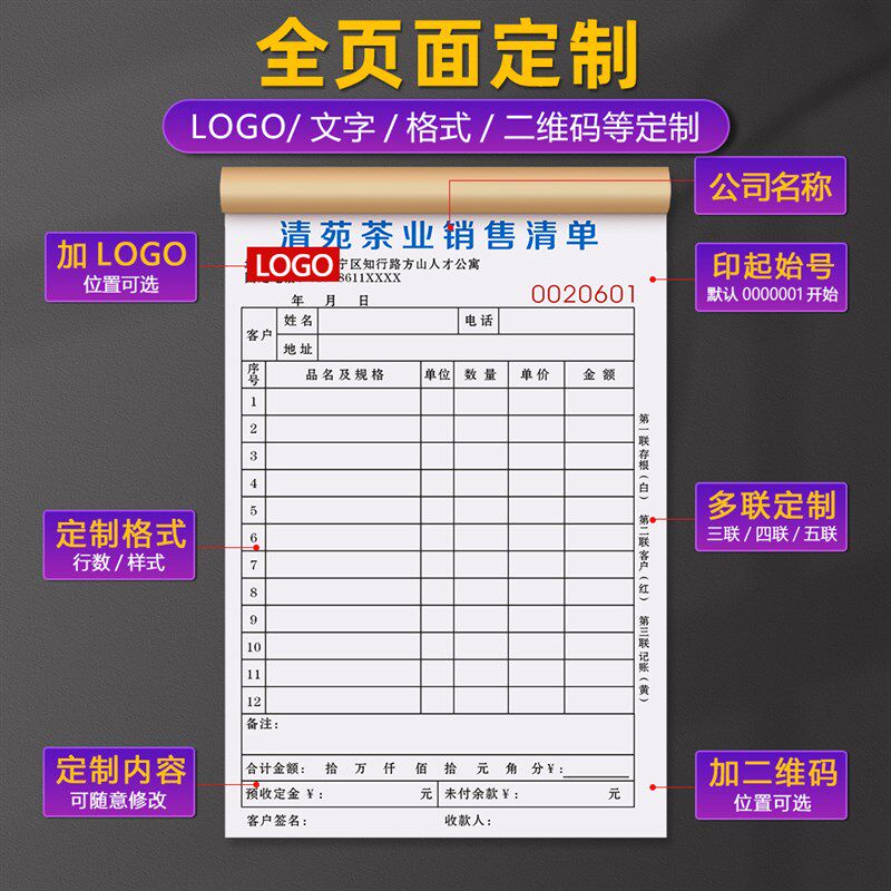 【茶叶店专用】销售单二联定制茶业茗茶订货购货结算小票茶楼茶馆