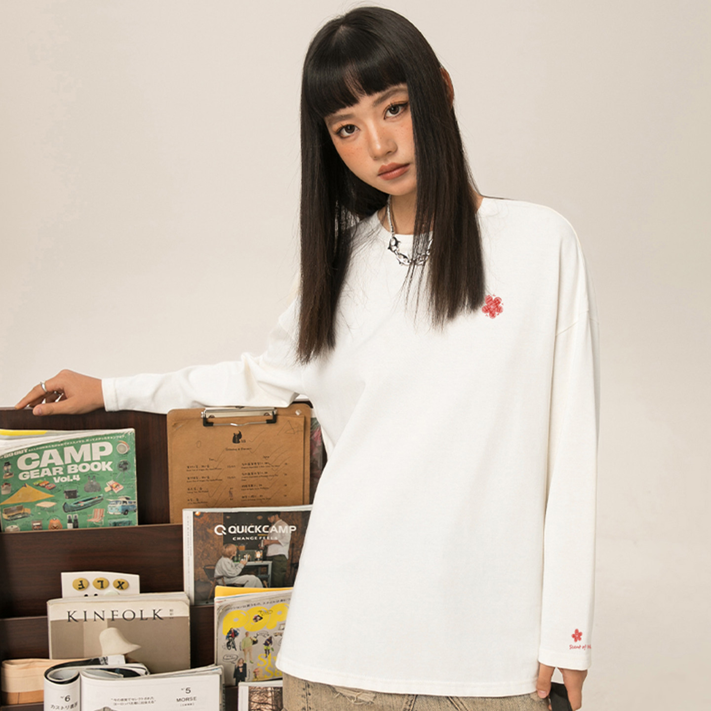三福长袖上衣女2025新款秋冬季圆领内搭打底衫修身白色t恤女装