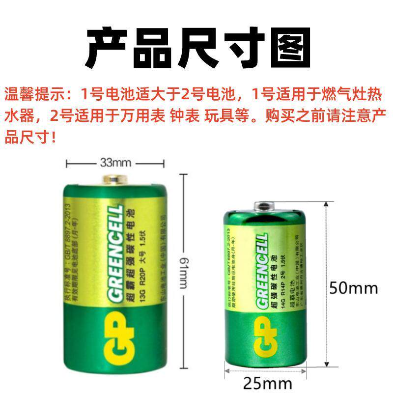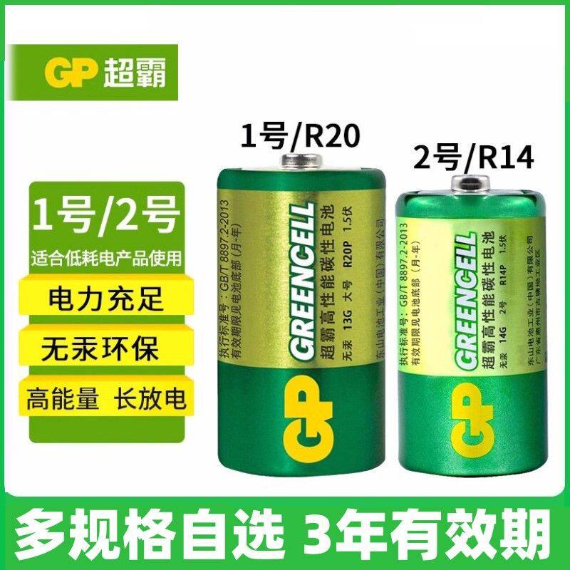 GP超霸1号大号电池燃气灶热水器R20P碳性2号中号3号万用表钟表用