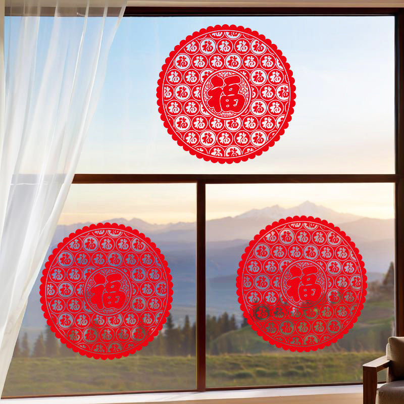 百福图窗贴大号福字门贴窗花剪纸静电贴纸玻璃贴装饰推拉门窗户