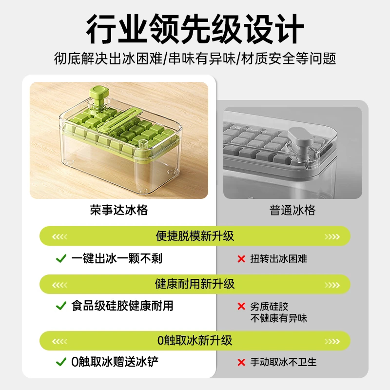 冻冰块模具按压冰格制冰神器带盖食品级自制制冰盒家用冰箱储存盒