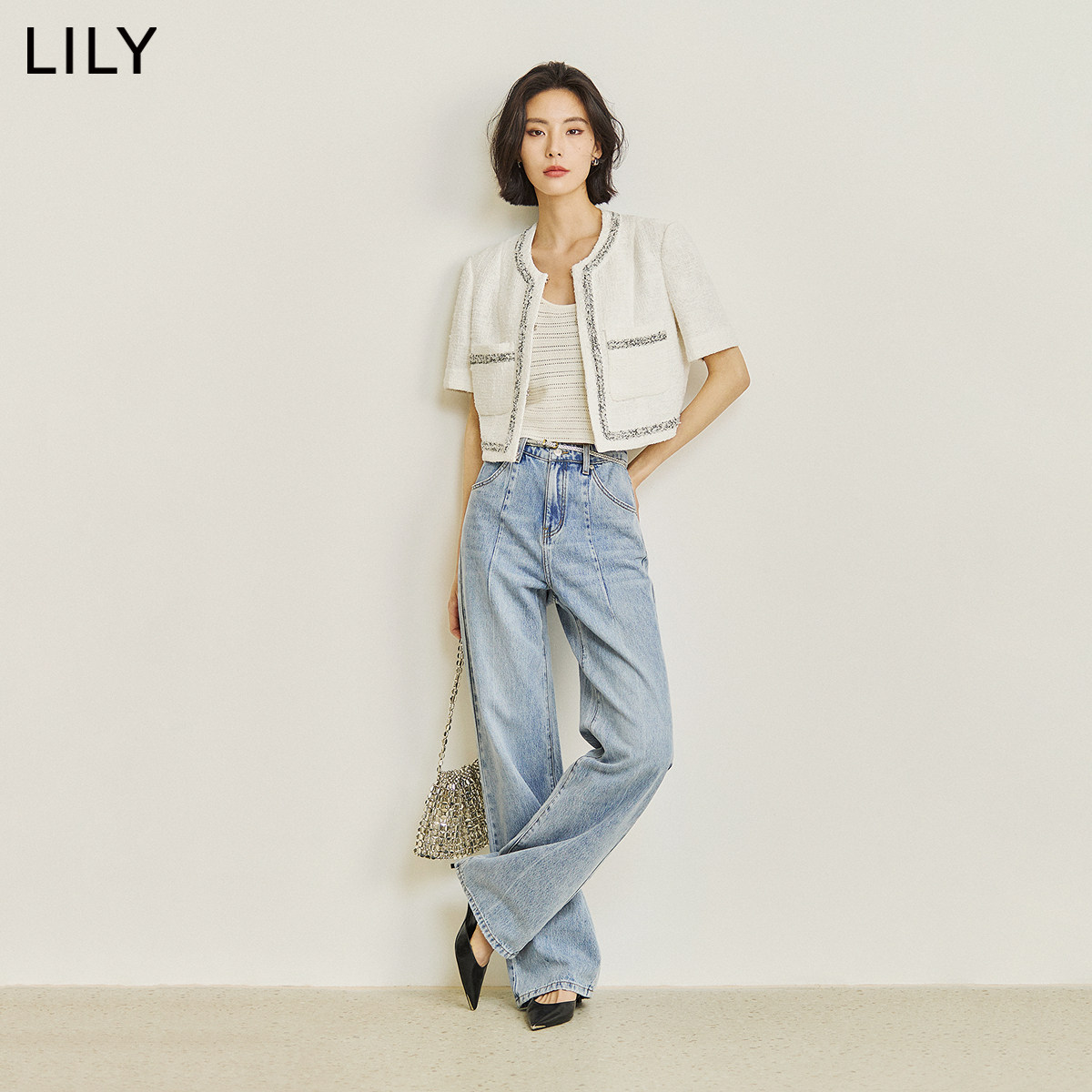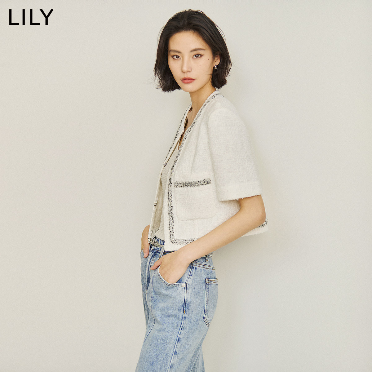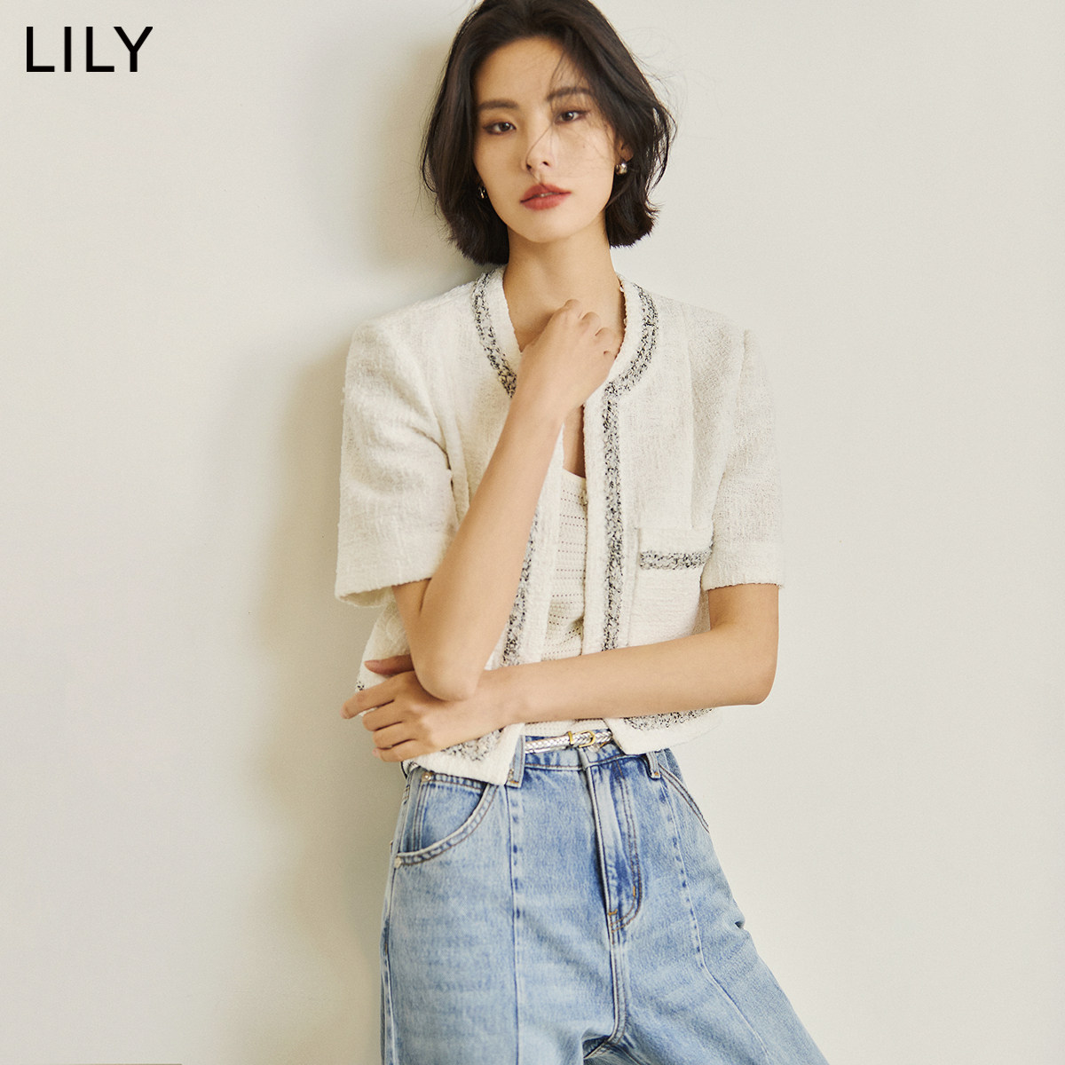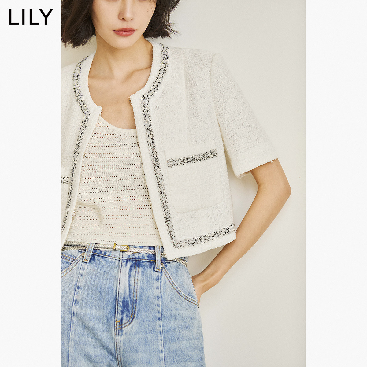 【商场同款】LILY夏新款女装复古小香风气质温柔圆领短外套女