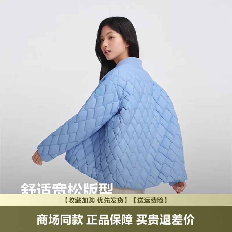 【鞠婧祎同款】鸭鸭2025年冬新款百搭短款女士纯色立领羽绒服外套