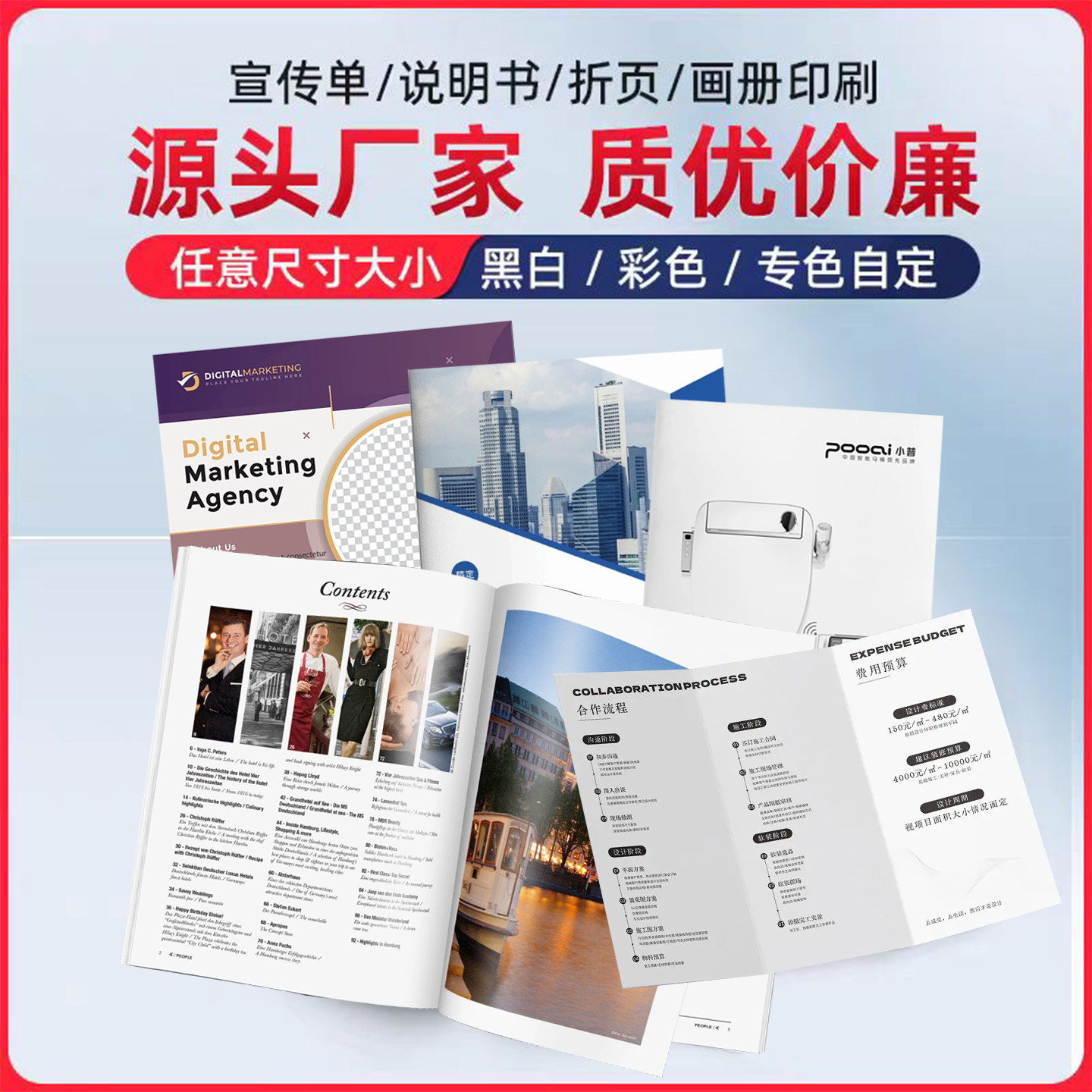 宣传单印制说明书三折页彩色黑白打印海报DM单彩页画册宣传册印刷