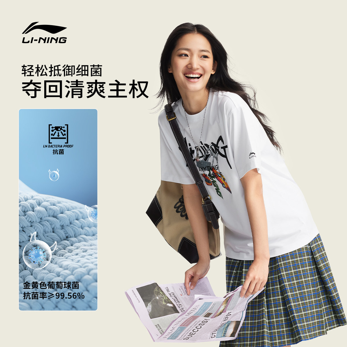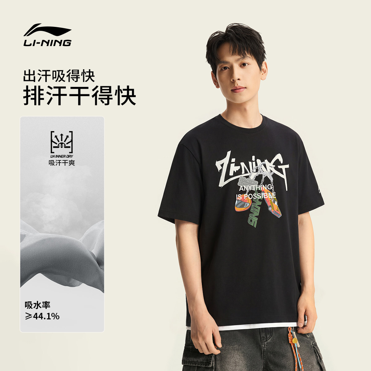 李宁凉感短袖女春夏2026新款复古情侣圆领半袖休闲上衣男运动T恤