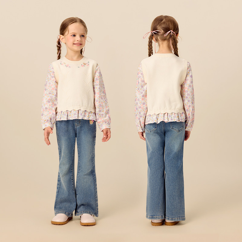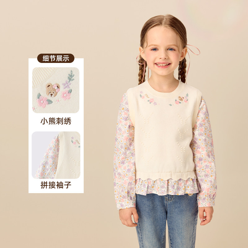 【商场同款】PawinPaw卡通小熊童装25年秋冬新款女童假两件衬衫