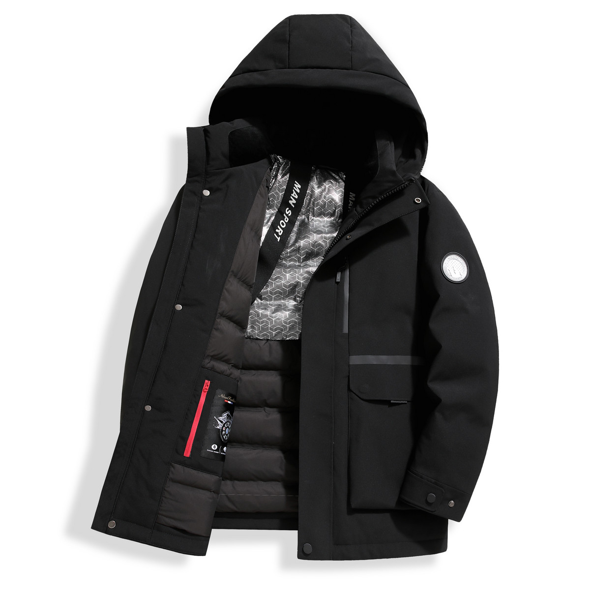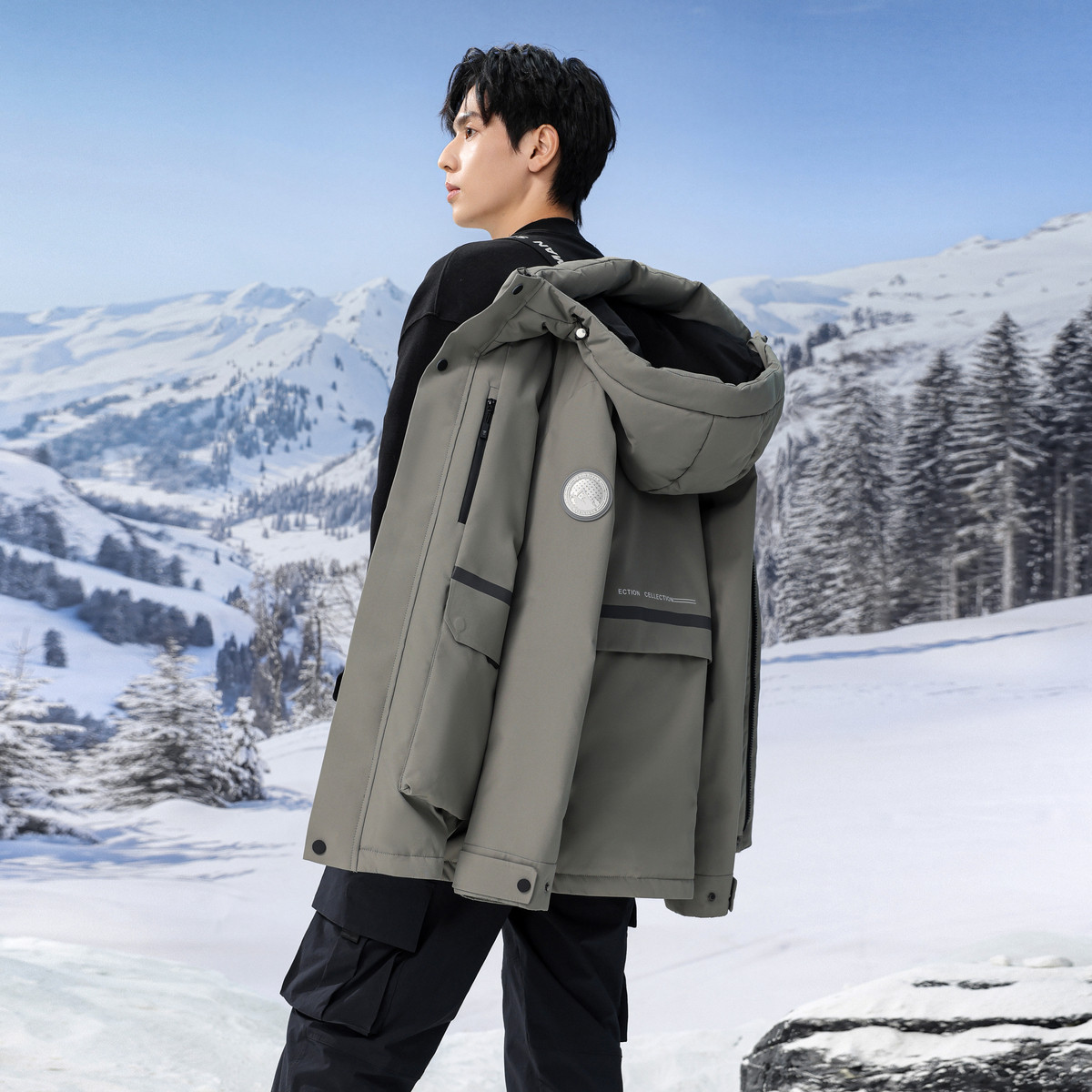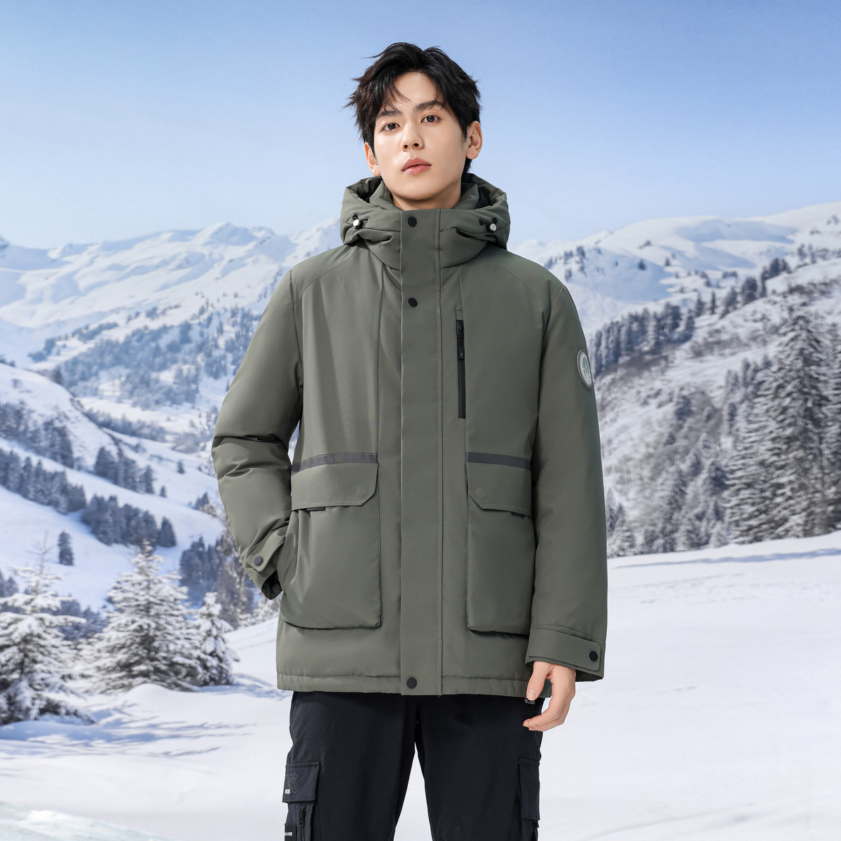 雪中飞2026春新款男士羽绒服短款时尚商务连帽简约鹅绒工装外套